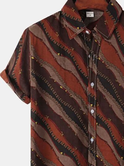 Men's Plus Size Striped Short Sleeve Button-Down Shirt