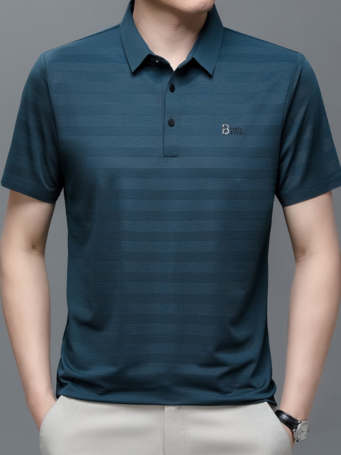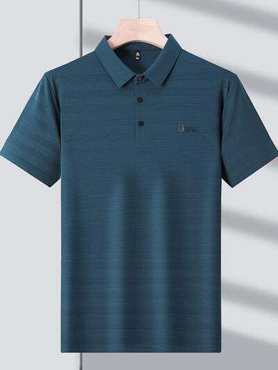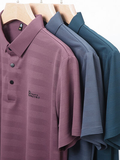 Men's Plus Size Striped Short Sleeve Polo