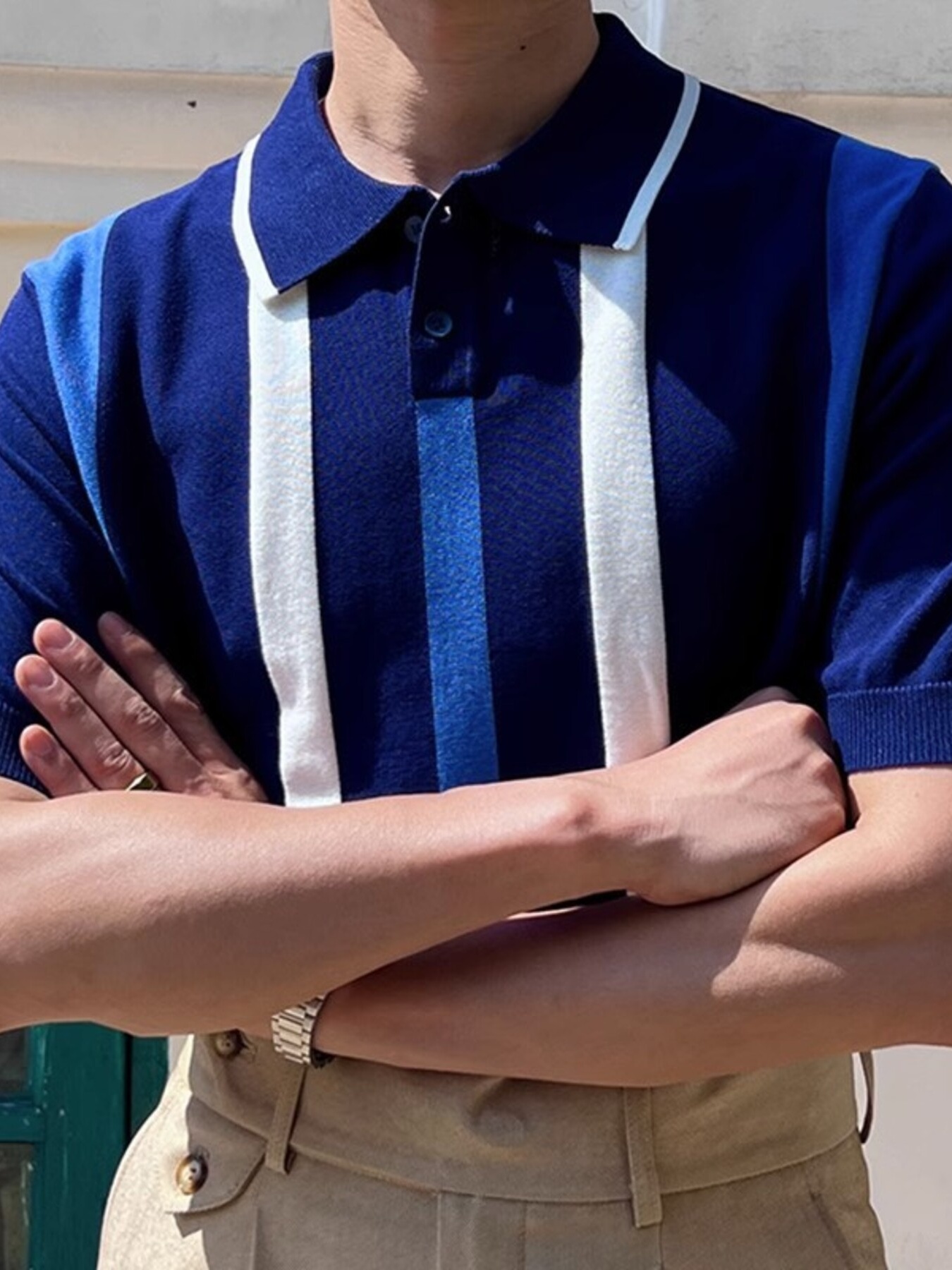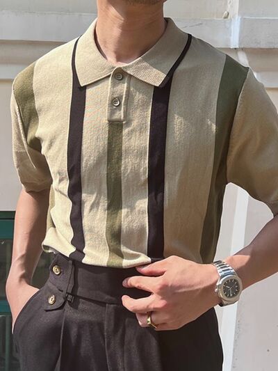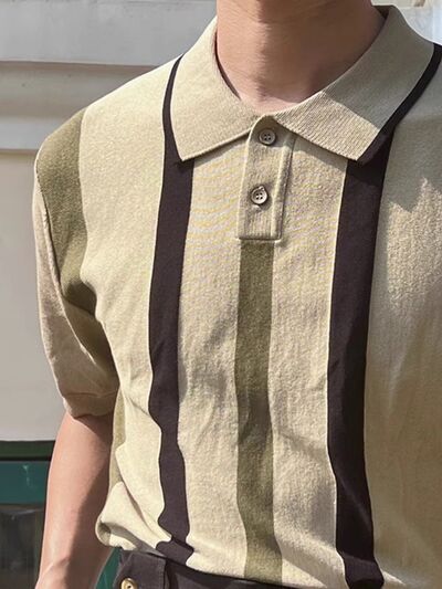 Men's Plus Size Striped Short Sleeve Polo