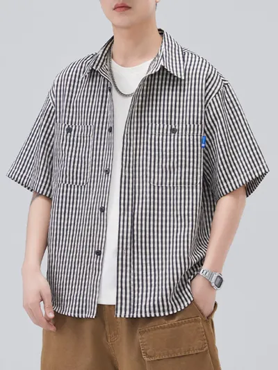 Men's Plus Size Striped Short Sleeve Shirt