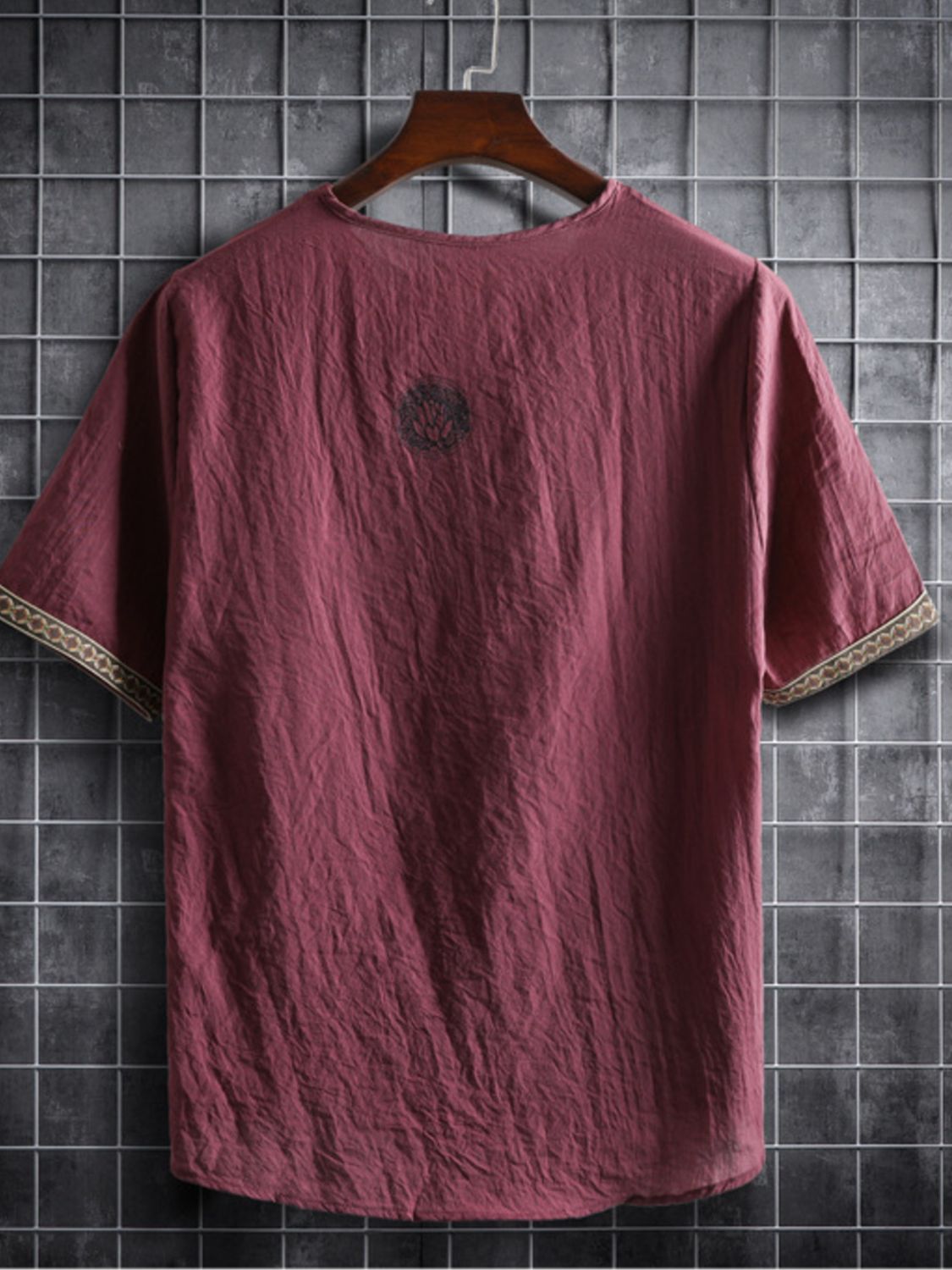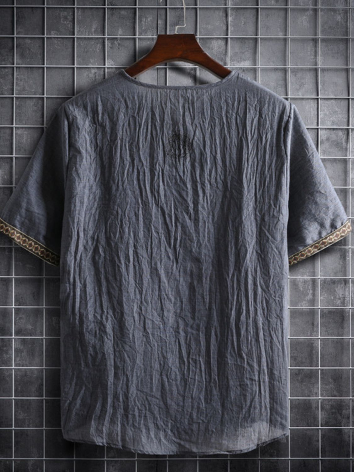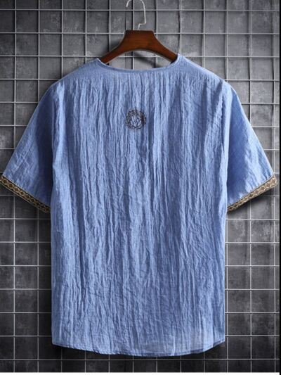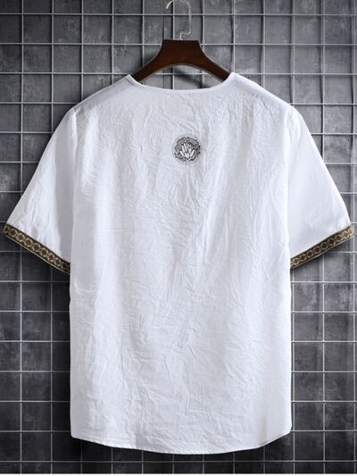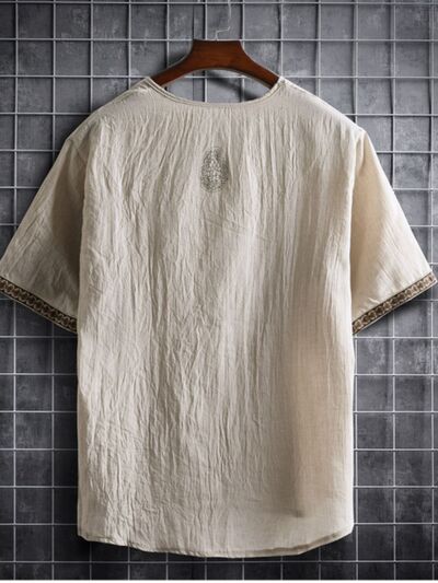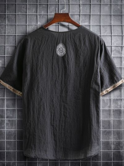Men's Plus Size Texture Short Sleeve Top with Ethnic Trim