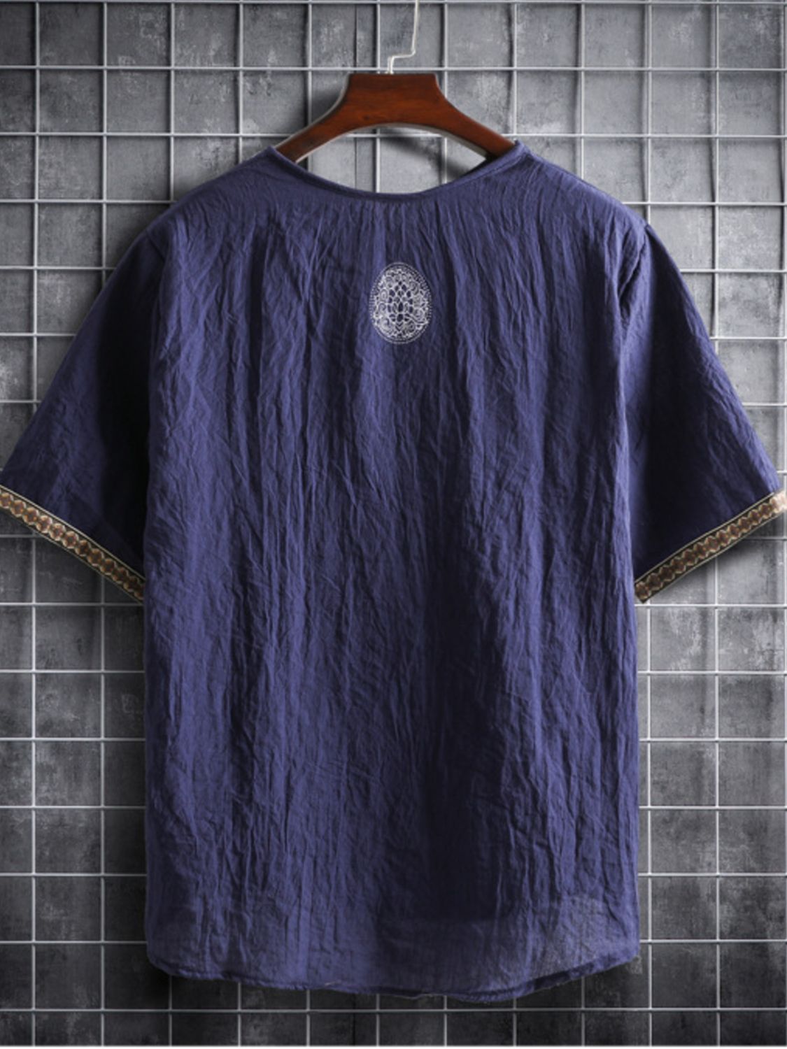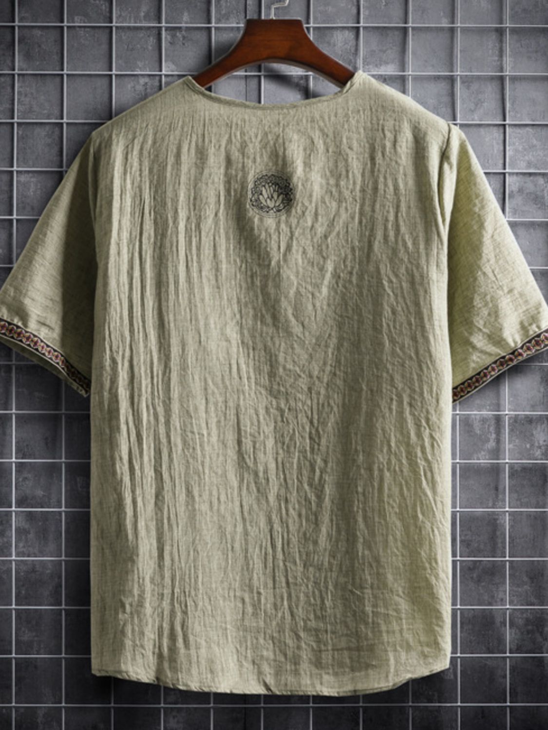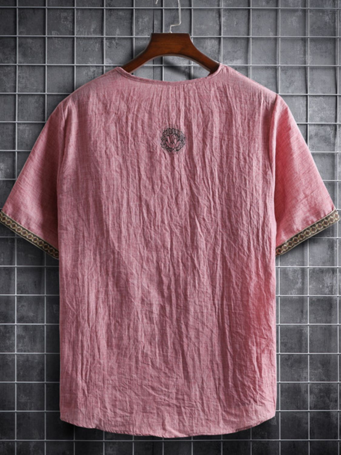 Men's Plus Size Texture Short Sleeve Top with Ethnic Trim
