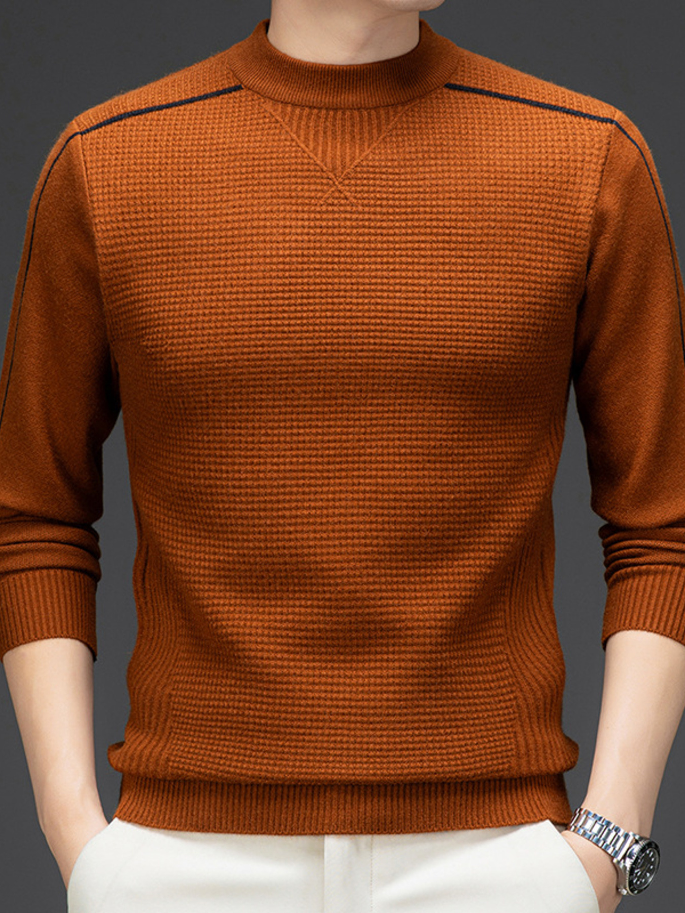 Men's Plus Size Textured Mock Neck Knit Top