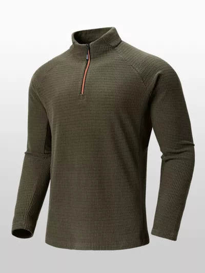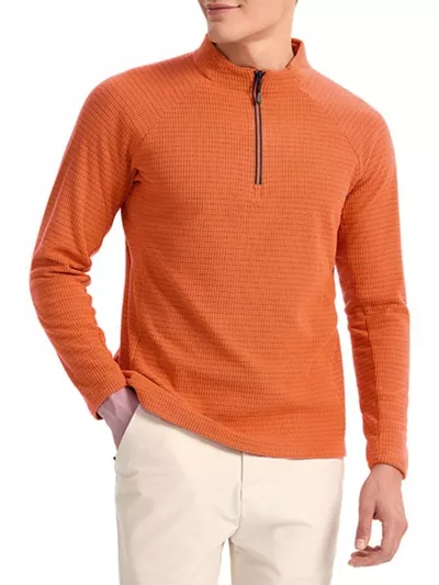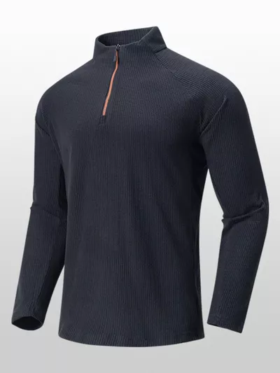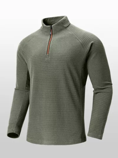 Men's Plus Size Textured Quarter- Long Sleeve Top