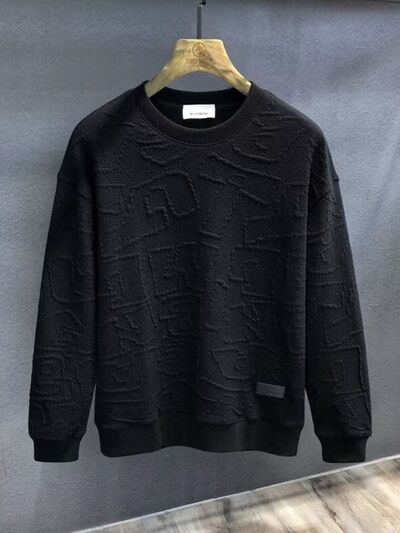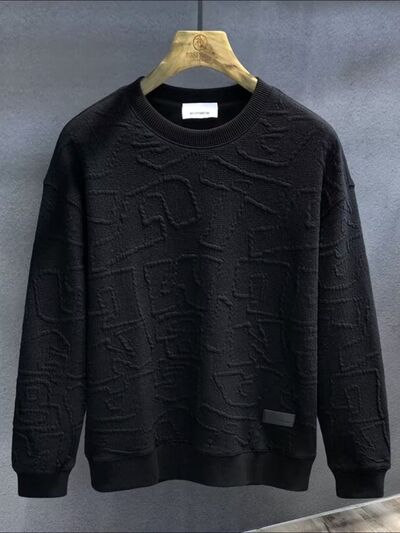 Men's Plus Size Textured Round Neck Long Sleeve Sweatshirt