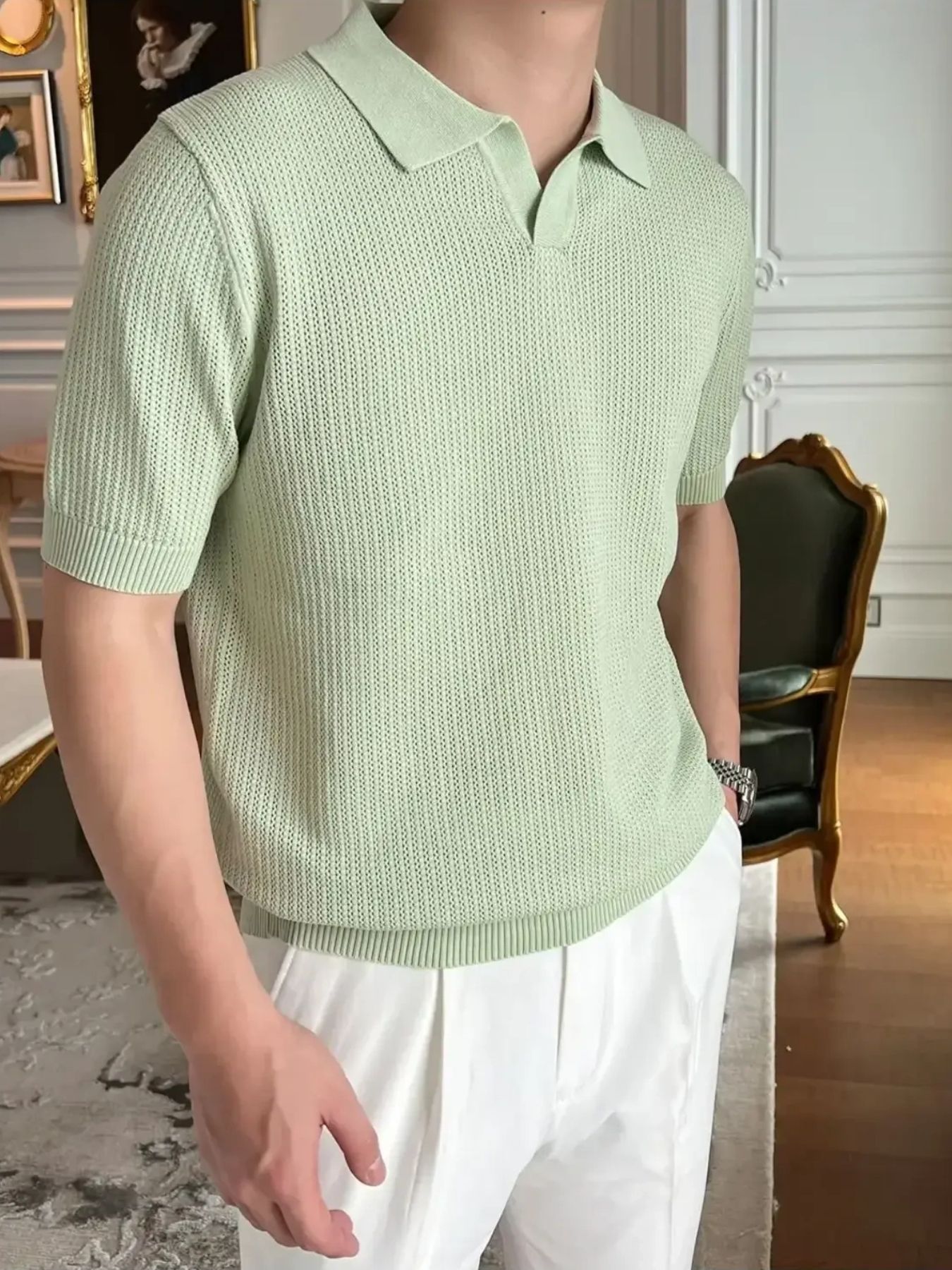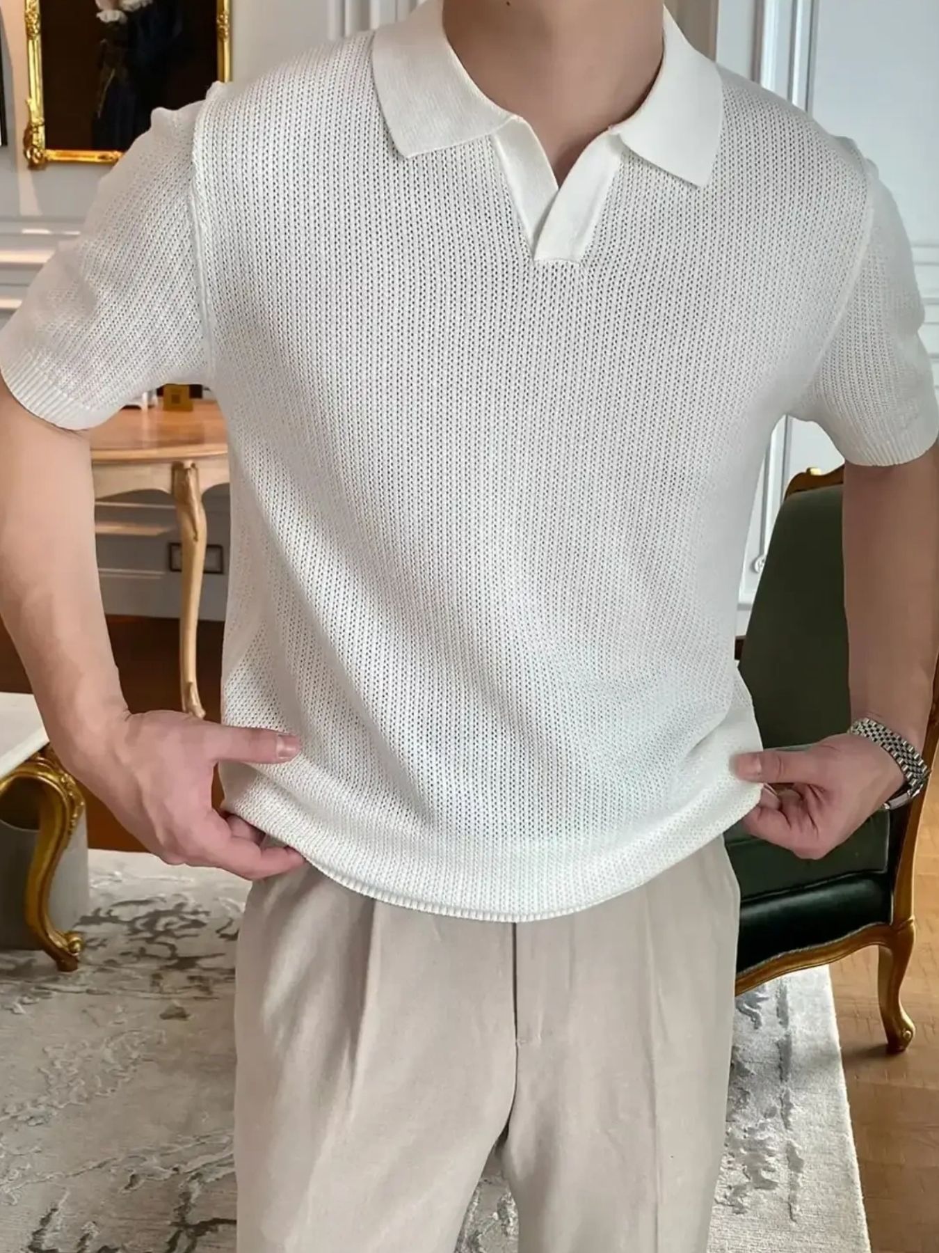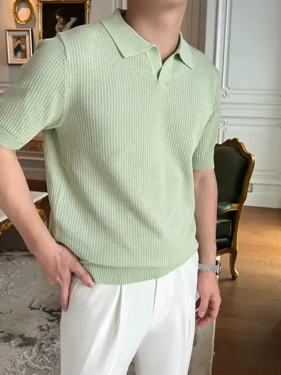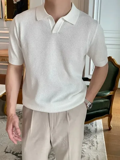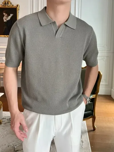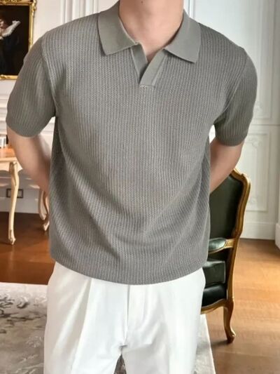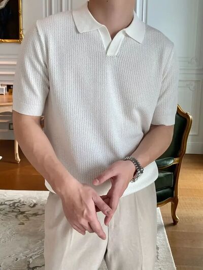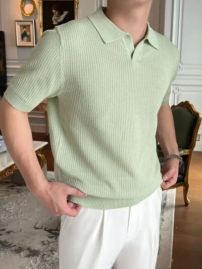 Men's Plus Size Textured Short Sleeve Polo