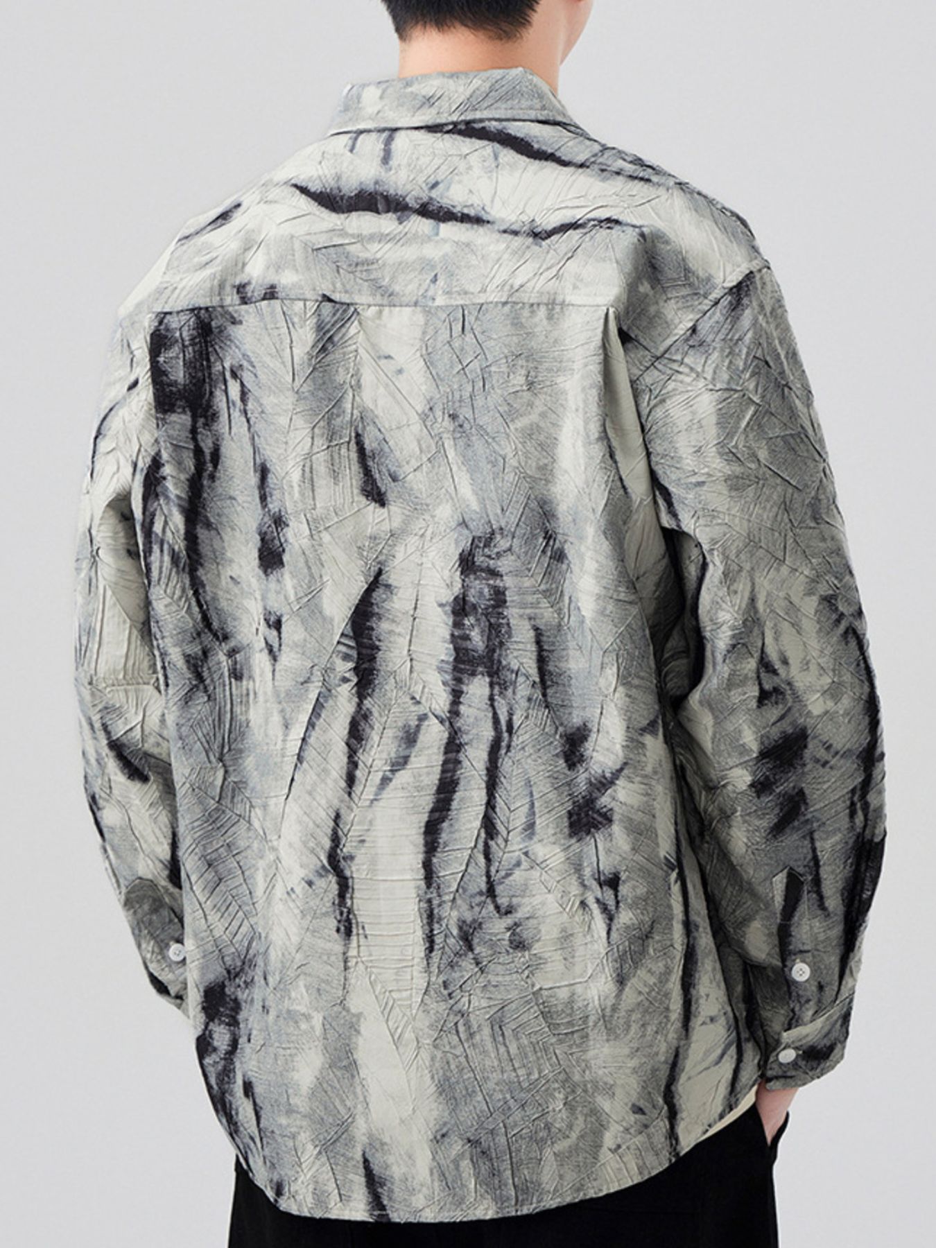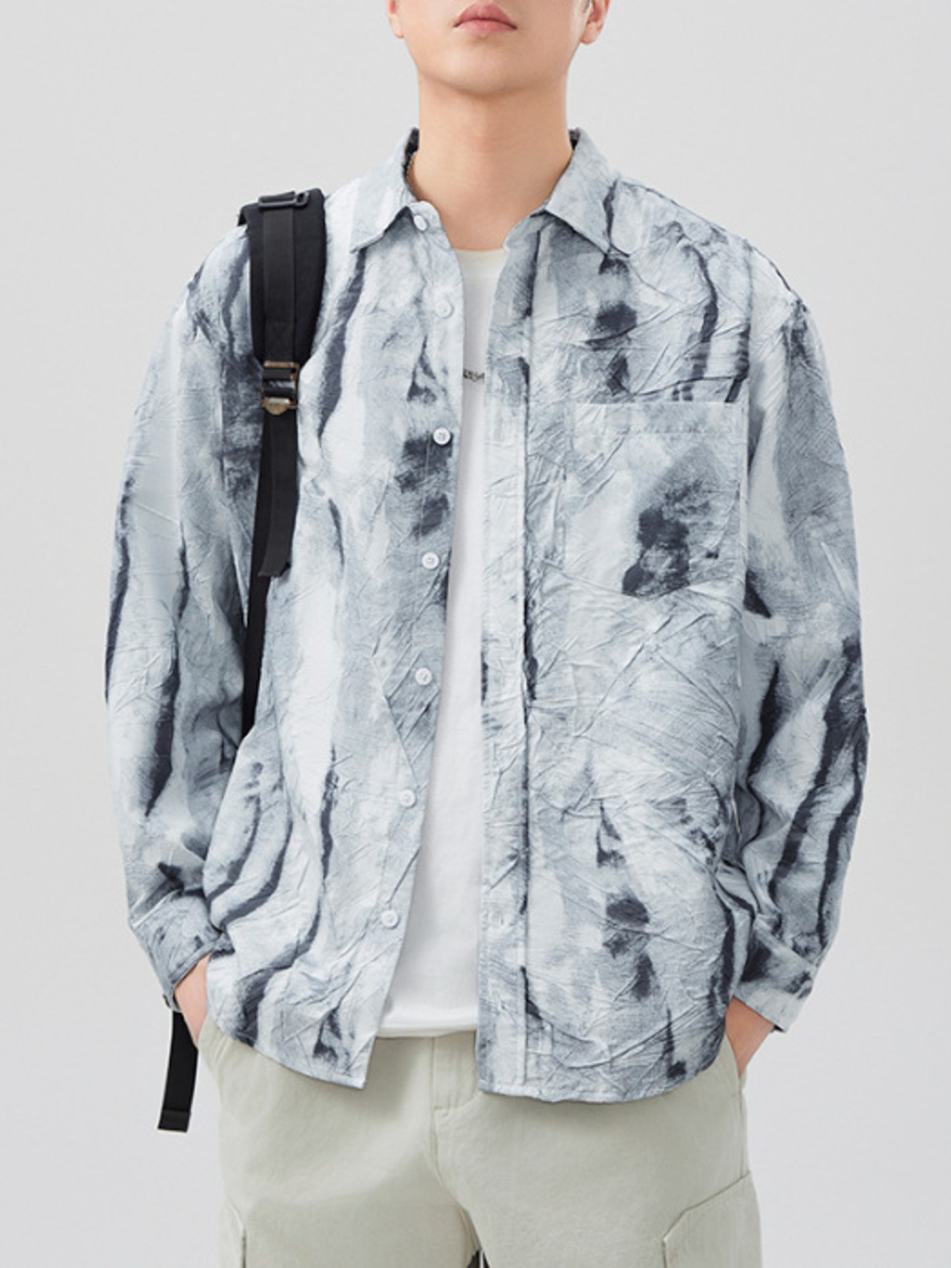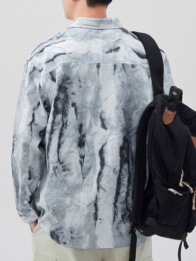 Men's Plus Size Tie-Dye Button Up Long Sleeve Shirt