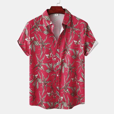 Men's Plus Size Tropical Floral Print Short Sleeve Casual Hawaiian Shirt