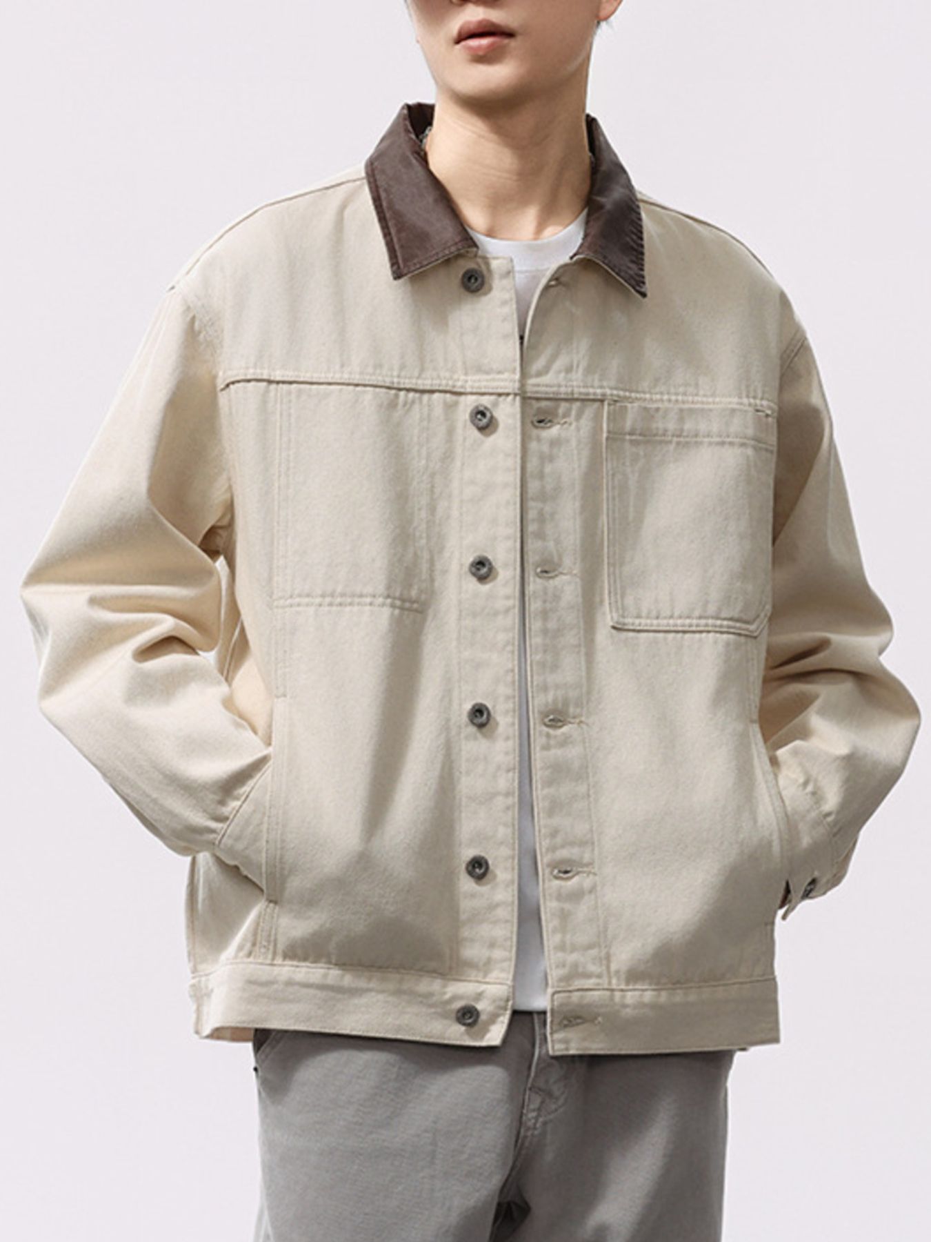 Men's Plus Size Two-Tone Collar Casual Jacket