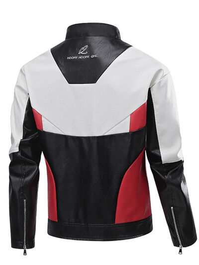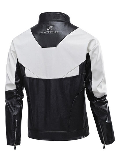 Men's Plus Size Two-Tone Zip Up Leather Jacket