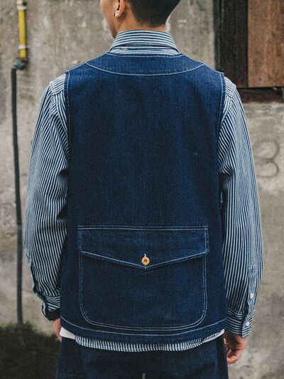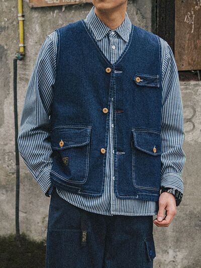 Men's Plus Size V-Neck Button Up Denim Vest