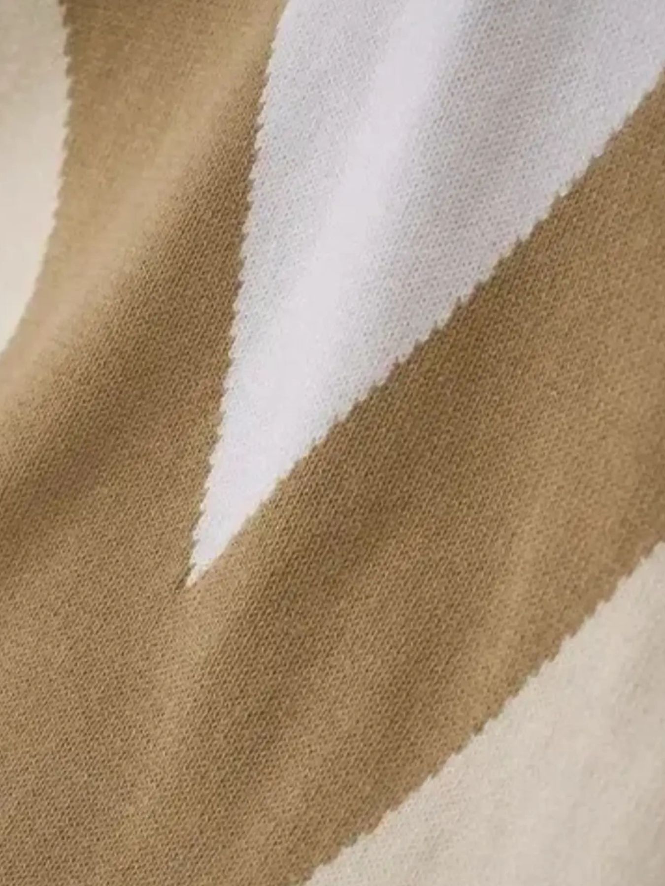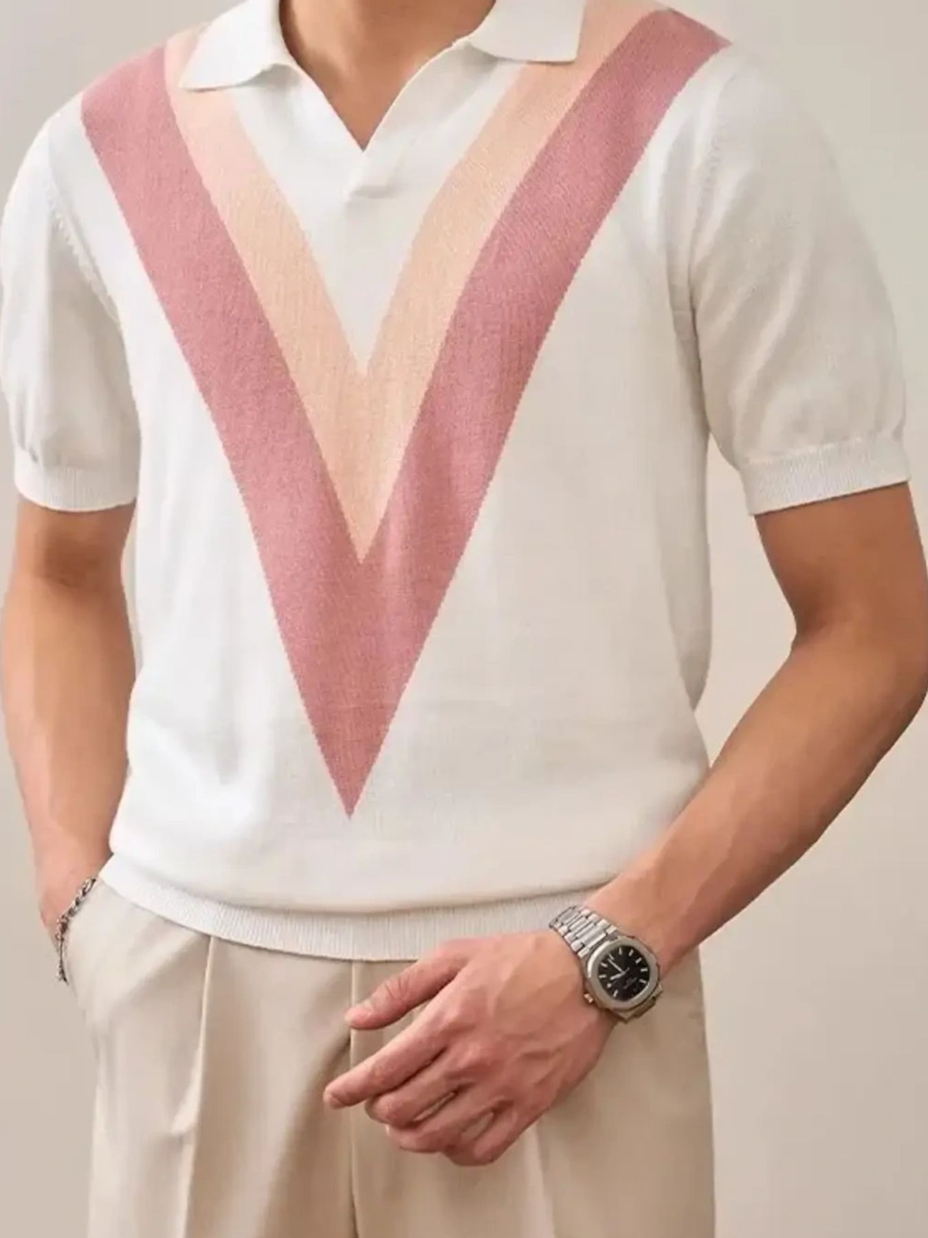 Men's Plus Size V-Pattern Contrast Knit Polo Shirt
