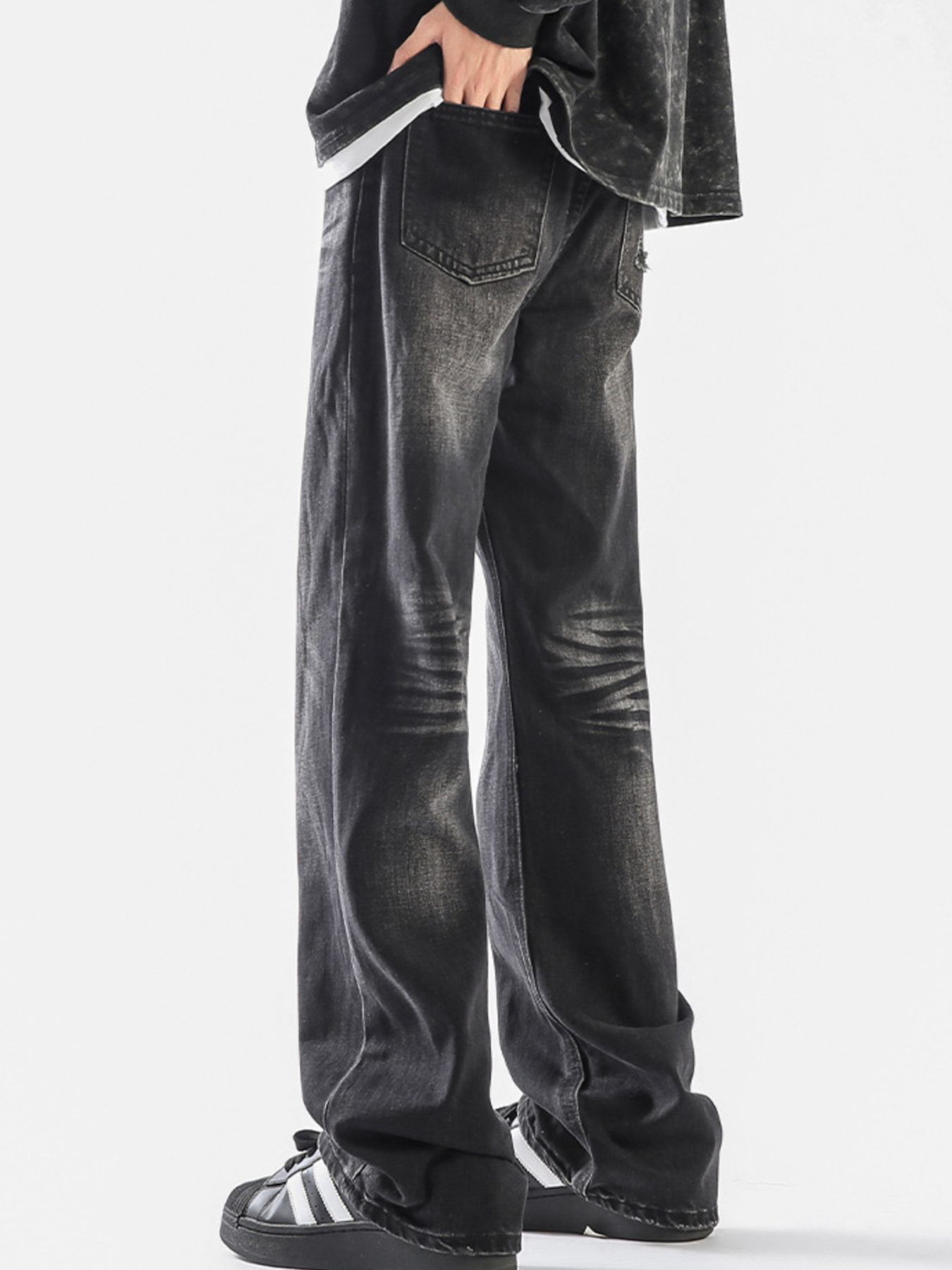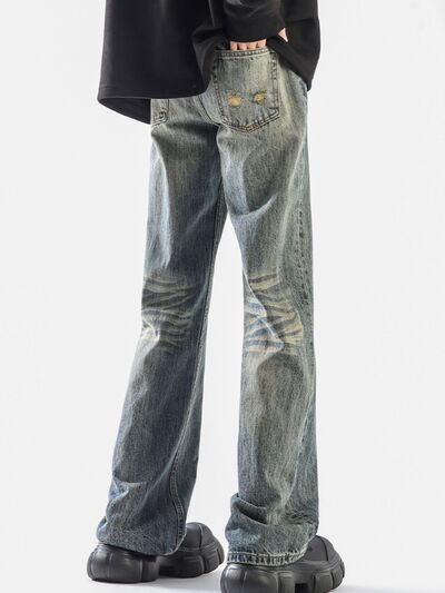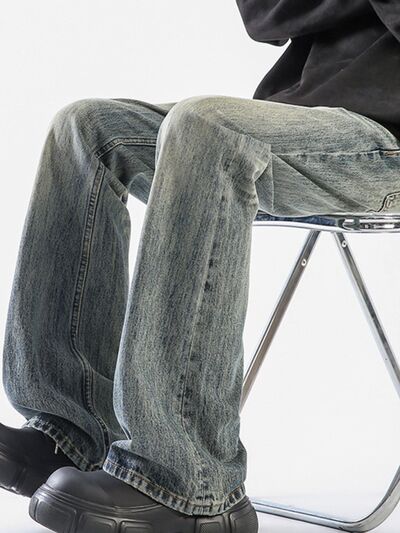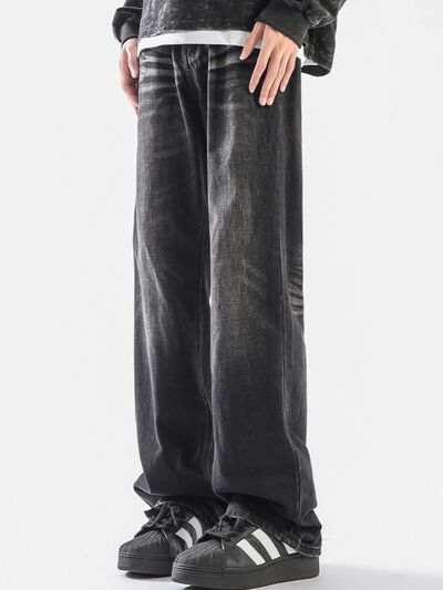Men's Plus Size Vintage Wash Wide Leg Jeans
