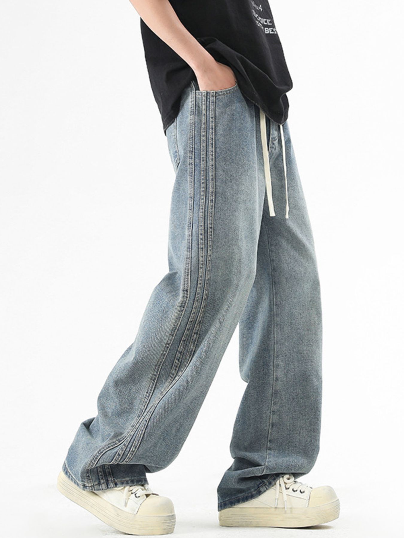 Men's Plus Size Vintage Wash Wide Leg Jeans