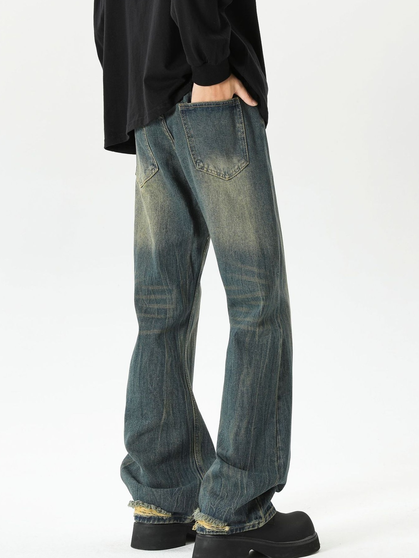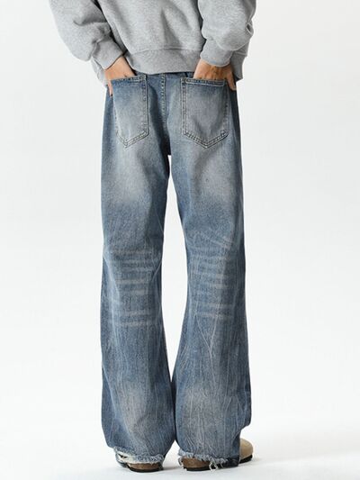 Men's Plus Size Vintage Wash Wide Leg Jeans