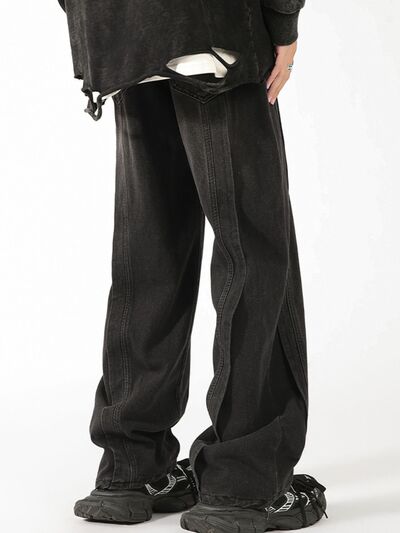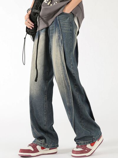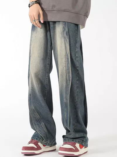 Men's Plus Size Vintage Wash Wide Leg Jeans