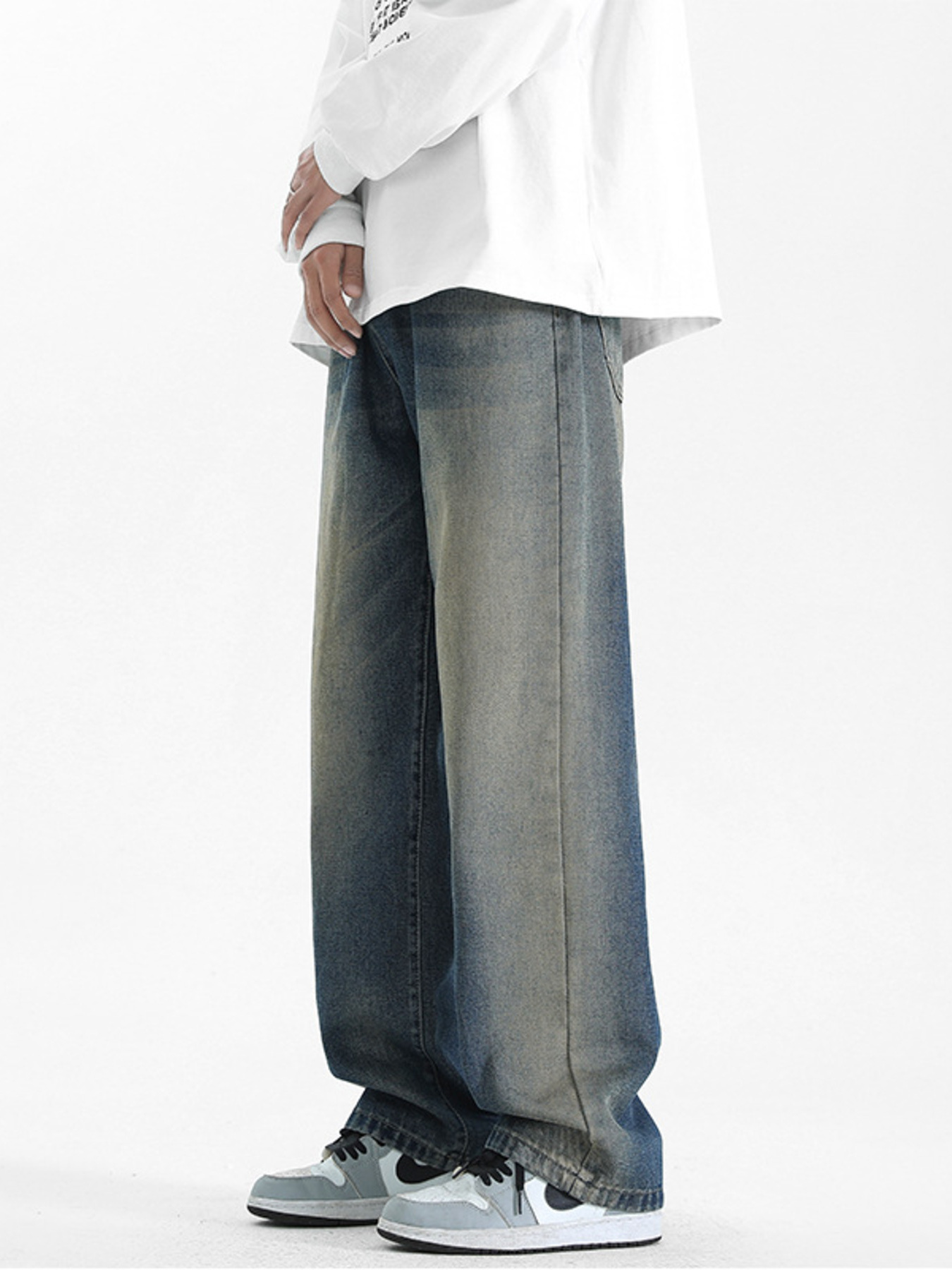 Men's Plus Size Vintage Wash Wide Leg Jeans