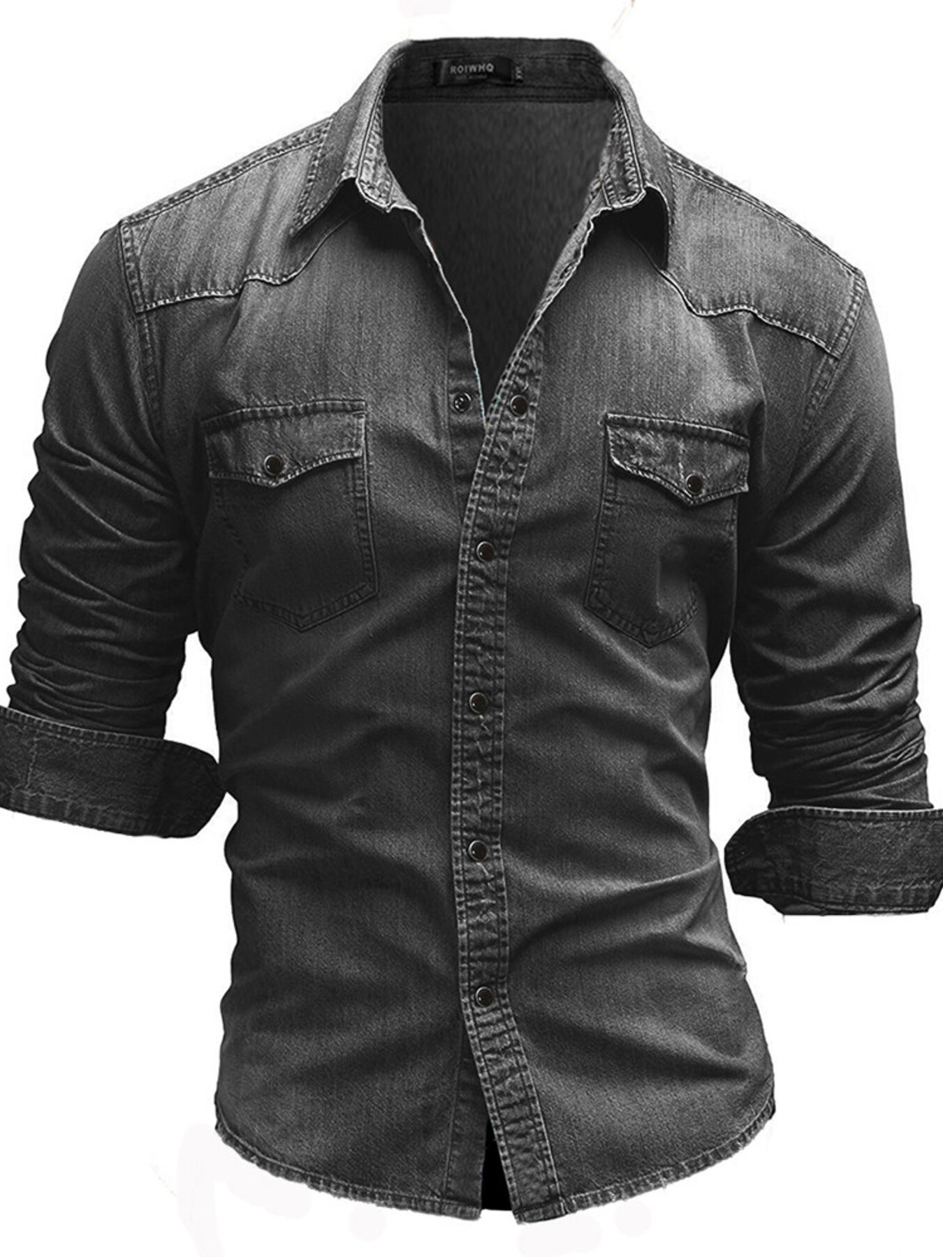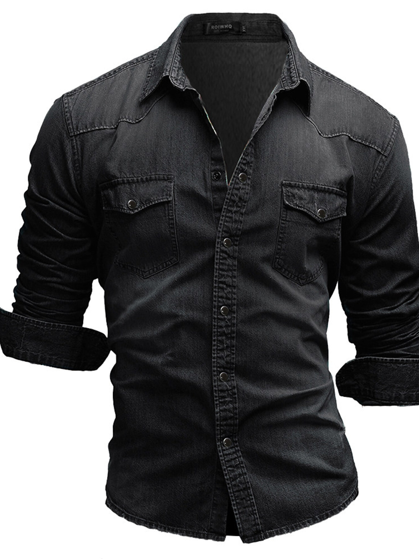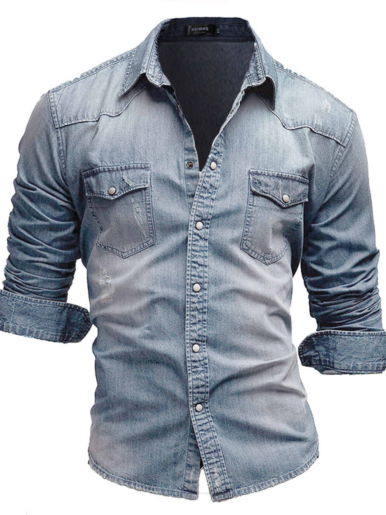 Men's Plus Size Vintage Washed Button Up Denim Shirt