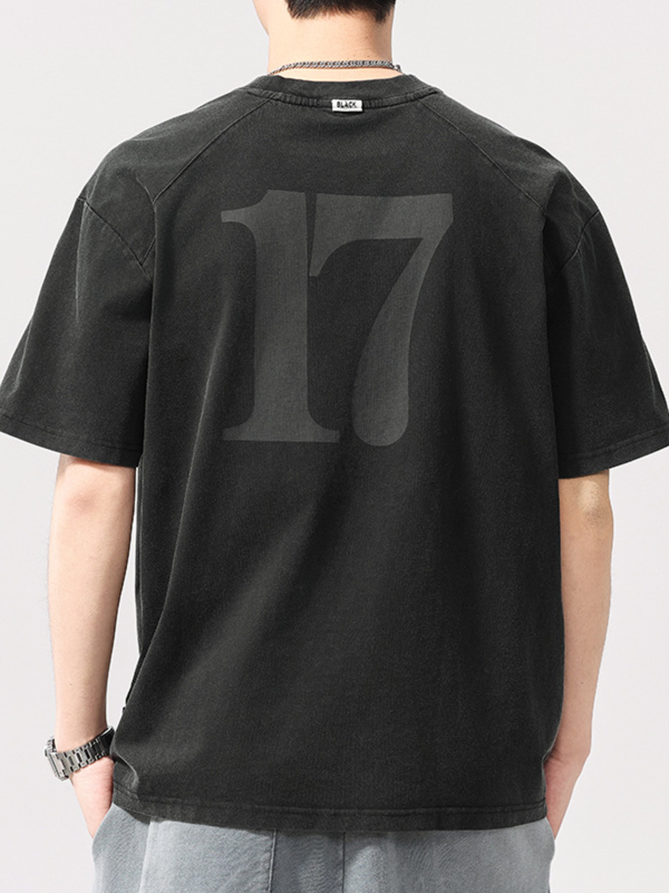 Men's Plus Size Vintage Washed Number 17 Oversized T-Shirt