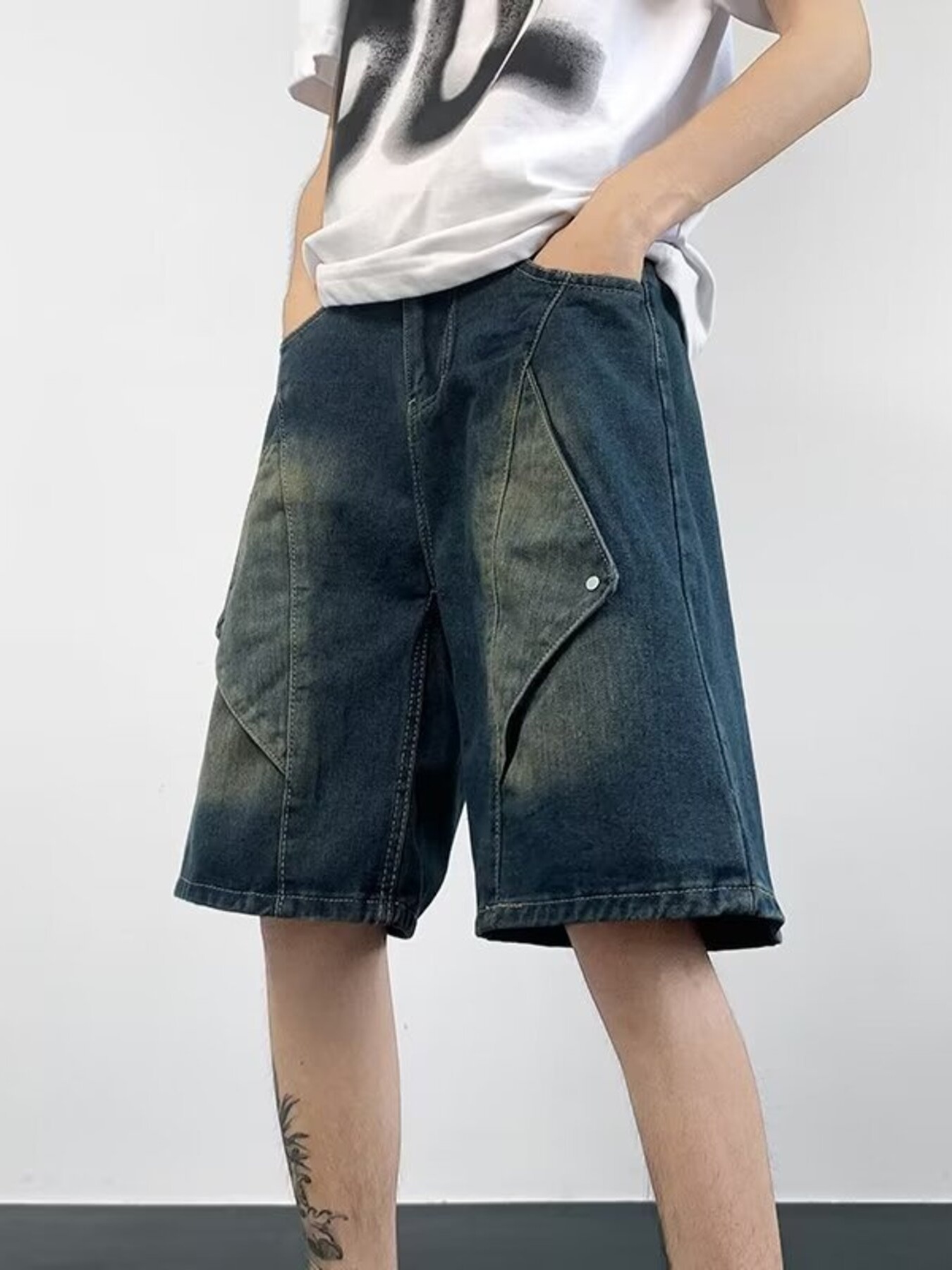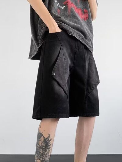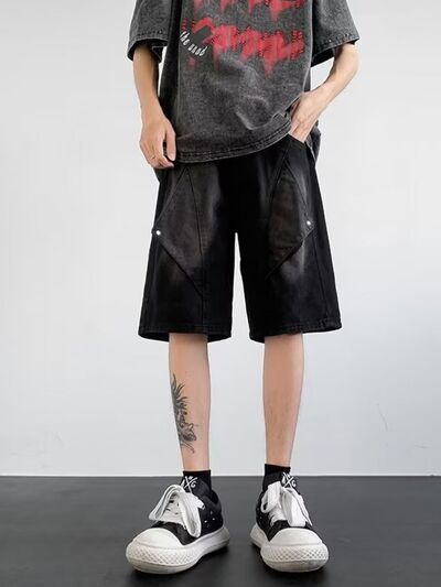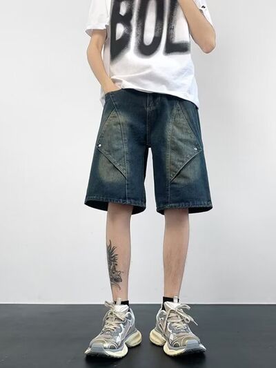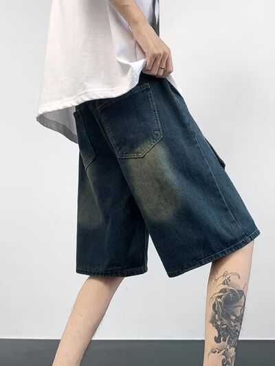 Men's Plus Size Wash Denim Shorts with Pockets
