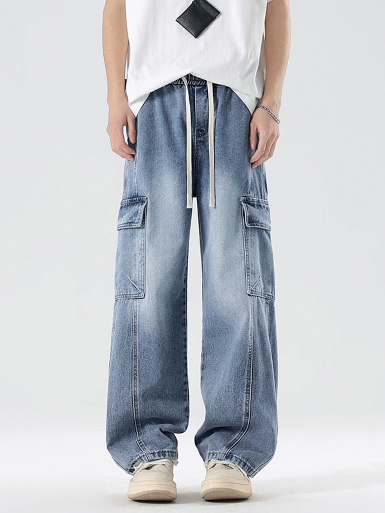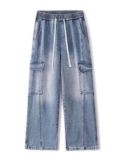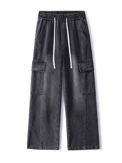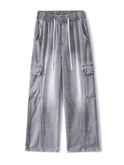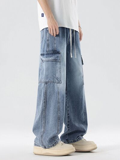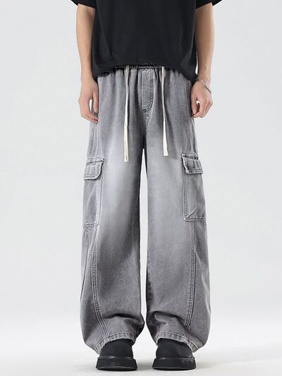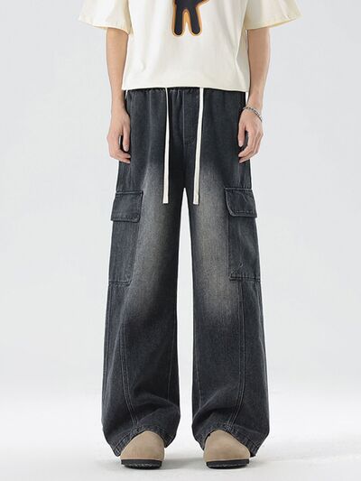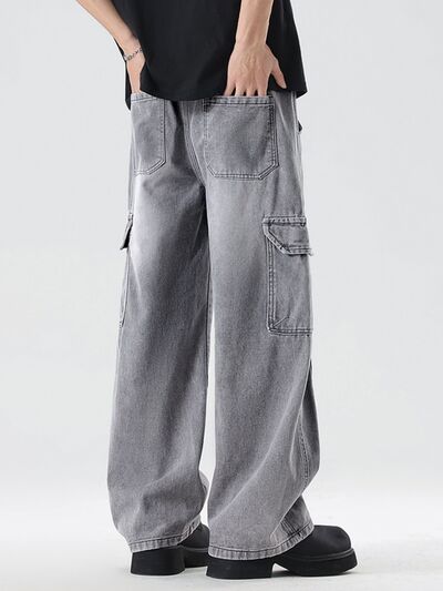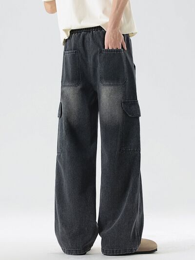 Men's Plus Size Wash Wide Leg Cargo Jeans