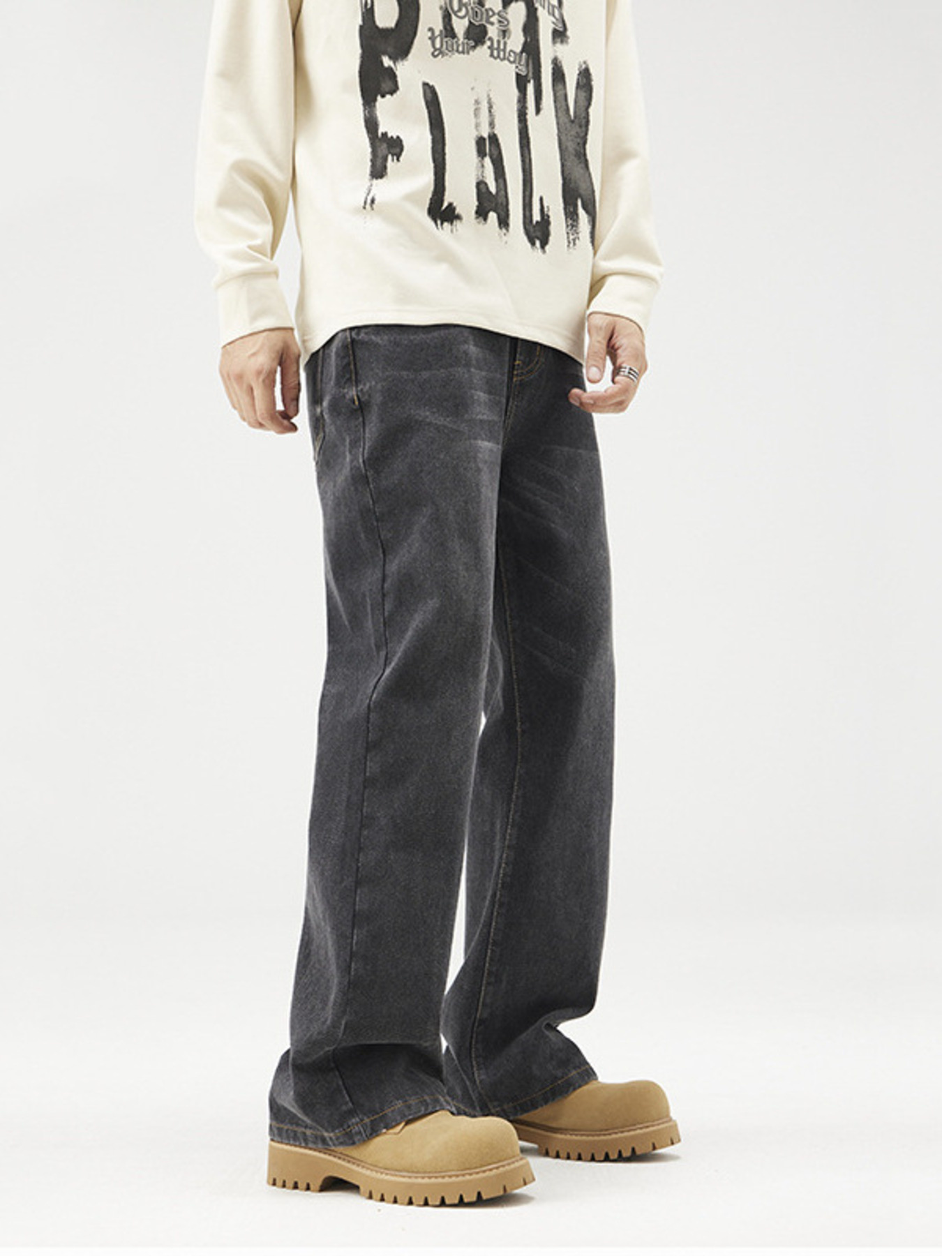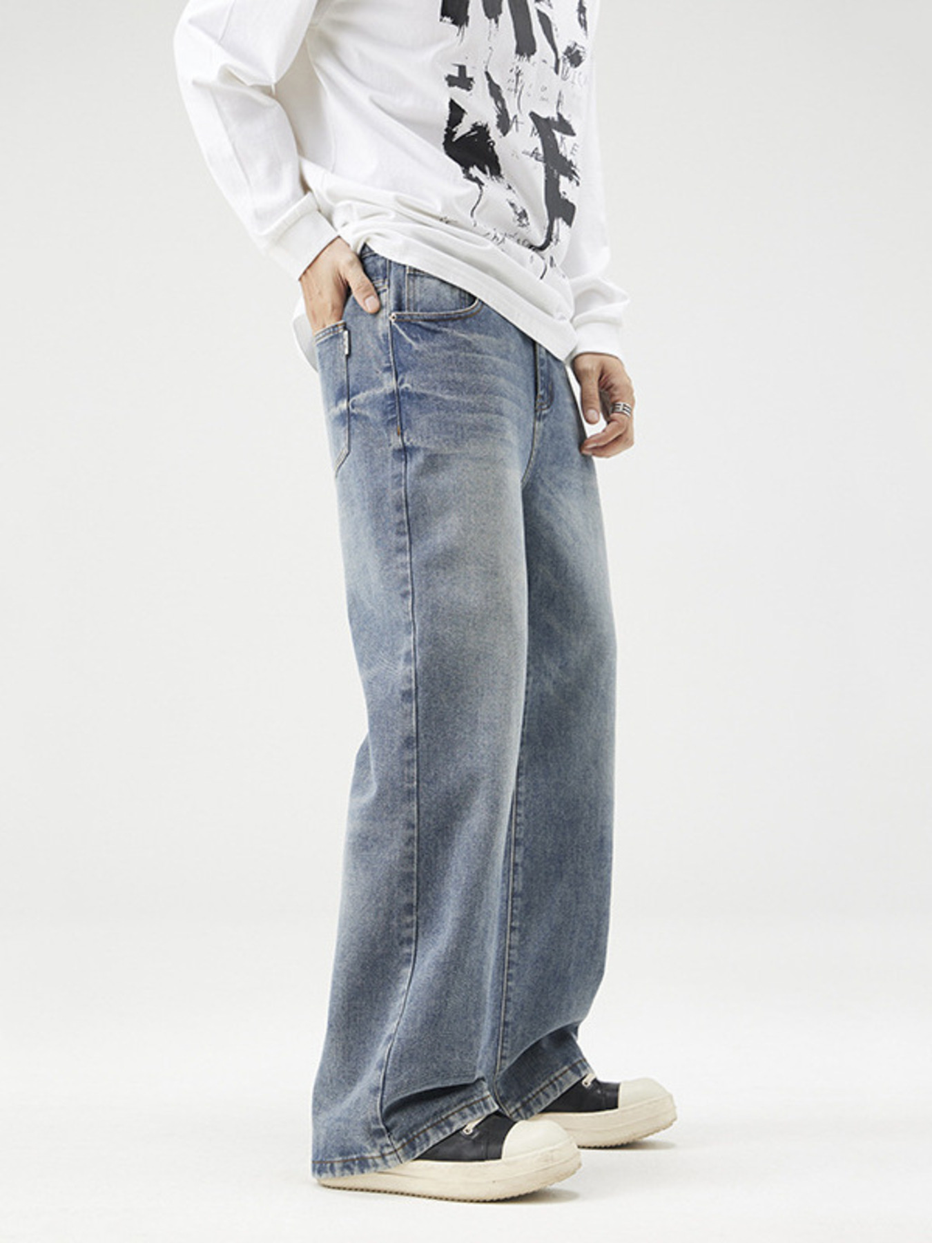 Men's Plus Size Wash Wide Leg Relaxed Fit Jeans