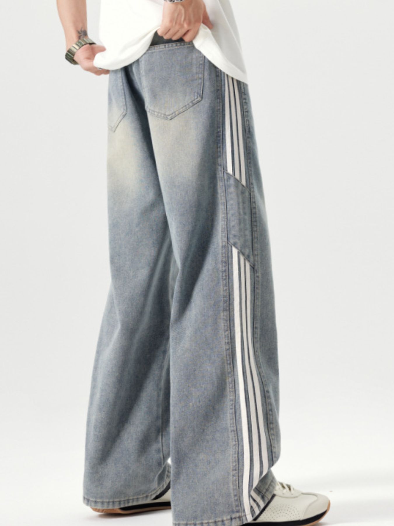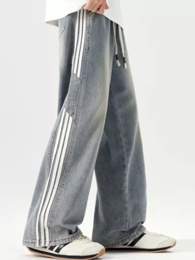 Men's Plus Size Washed Side Stripe Wide Leg Jeans