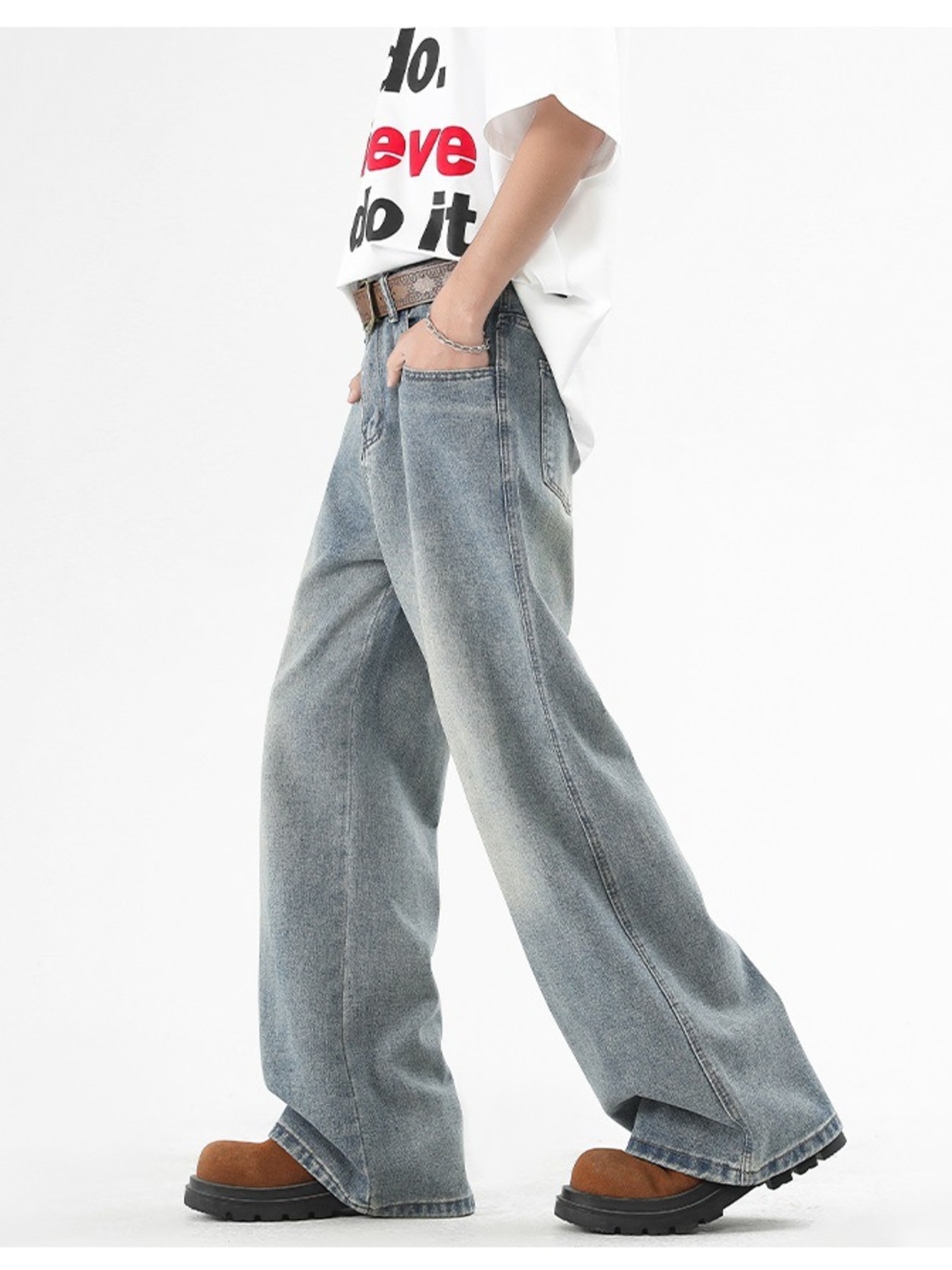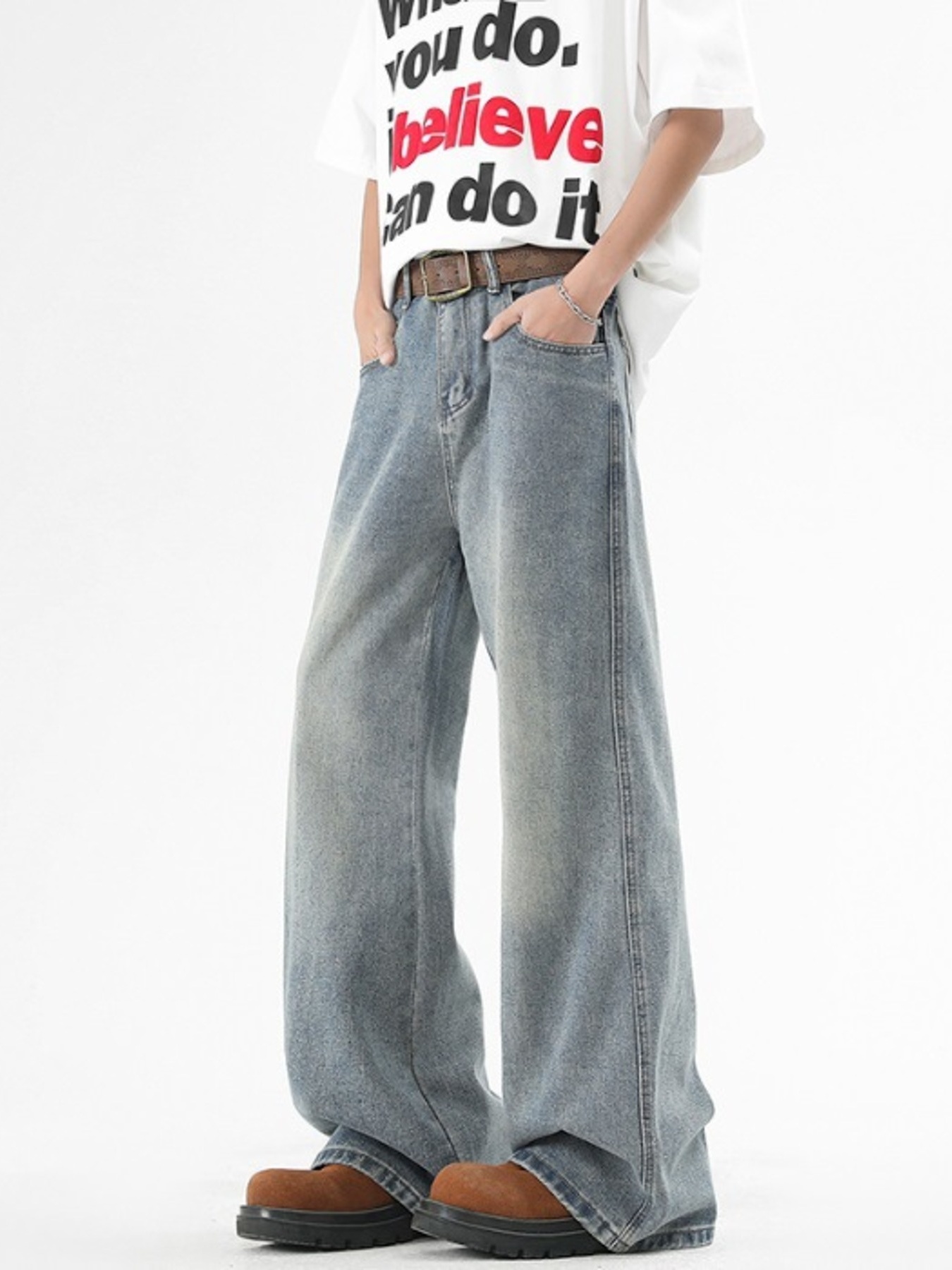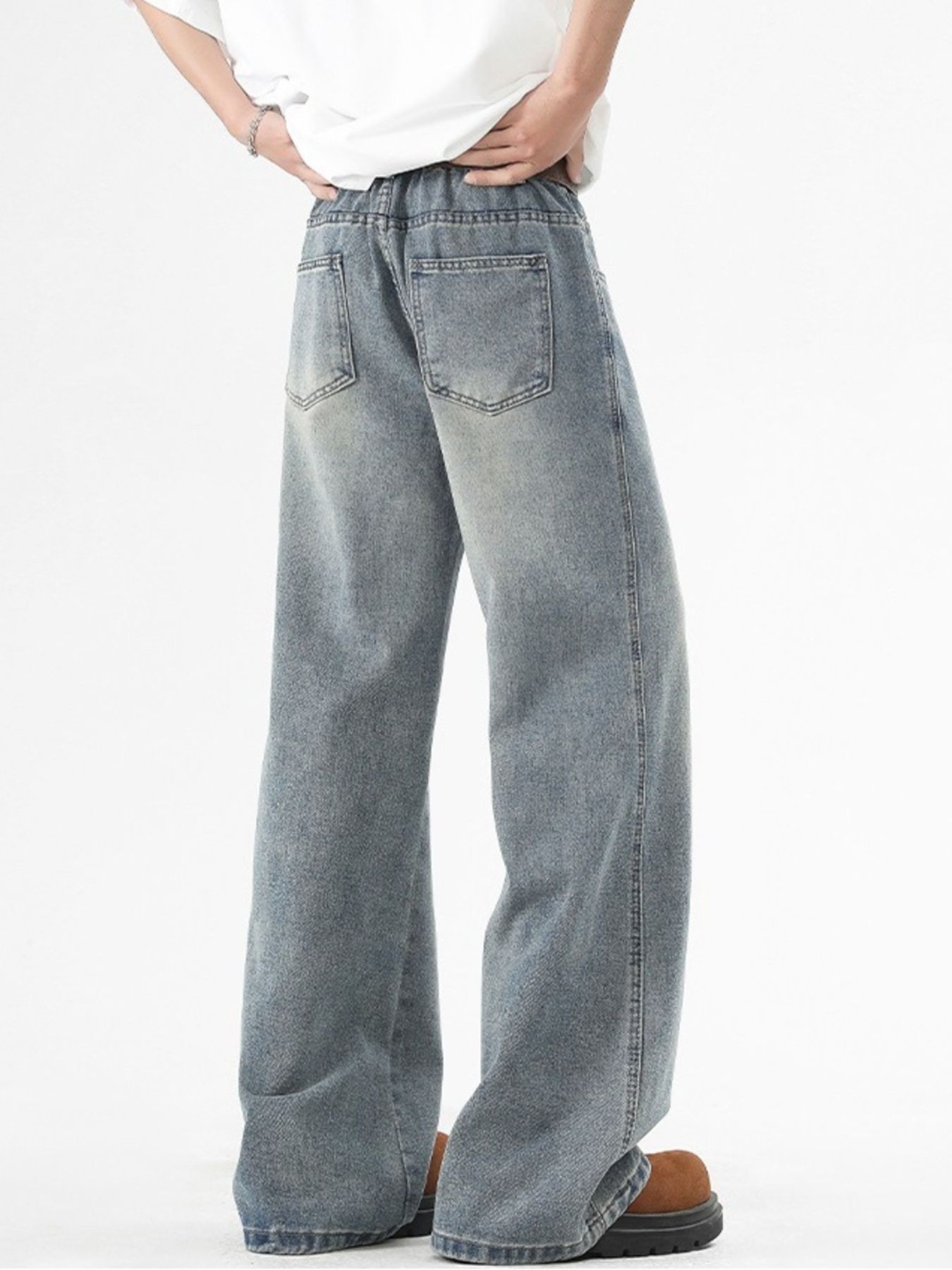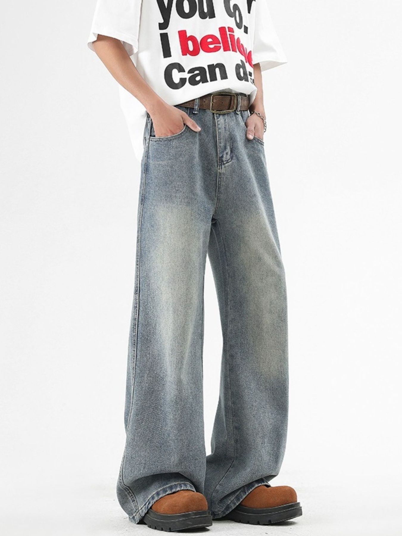 Men's Plus Size Washed Wide Leg Jeans