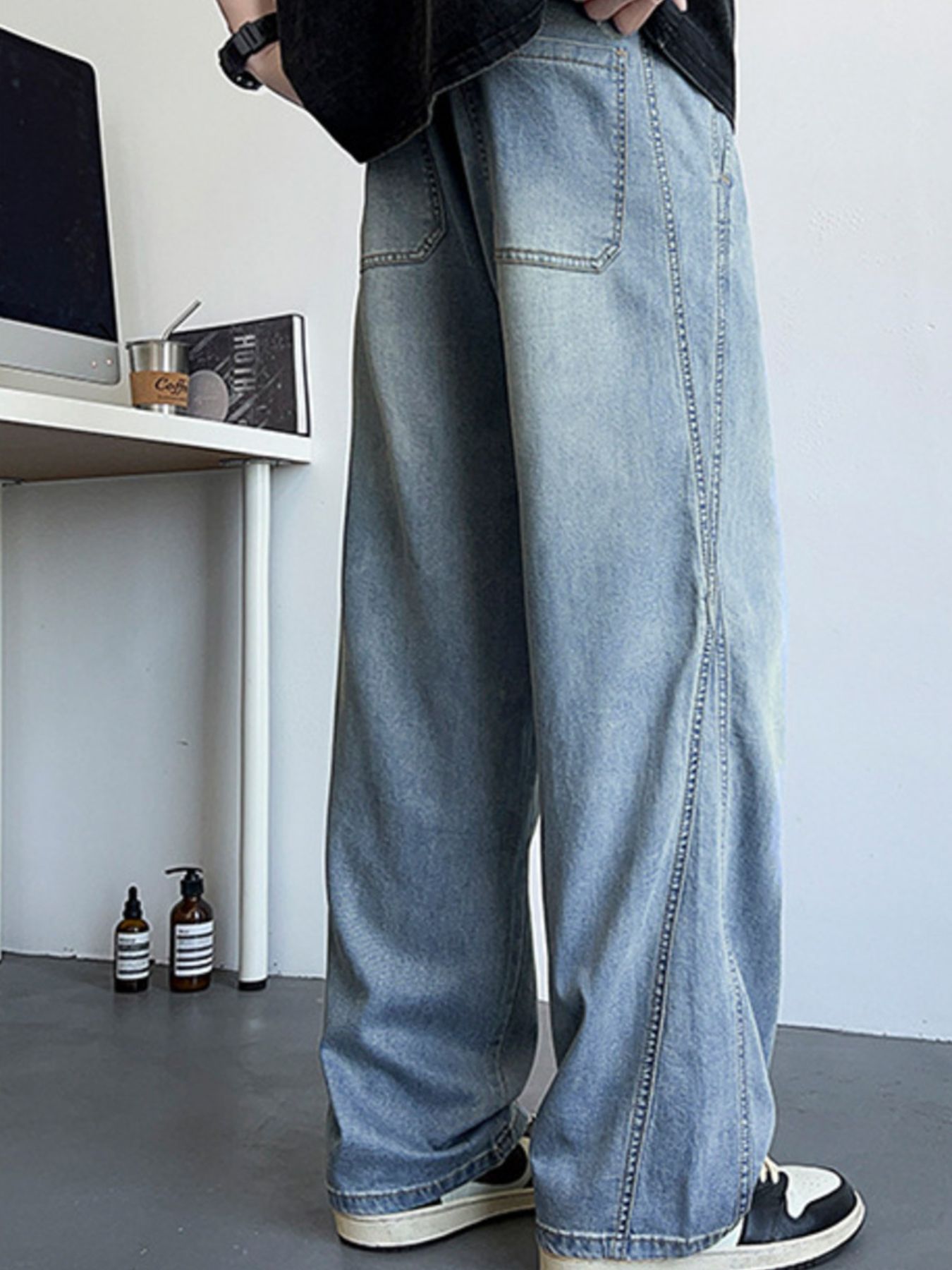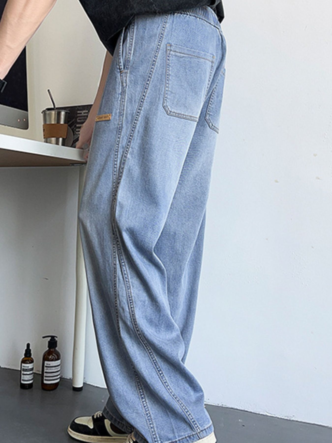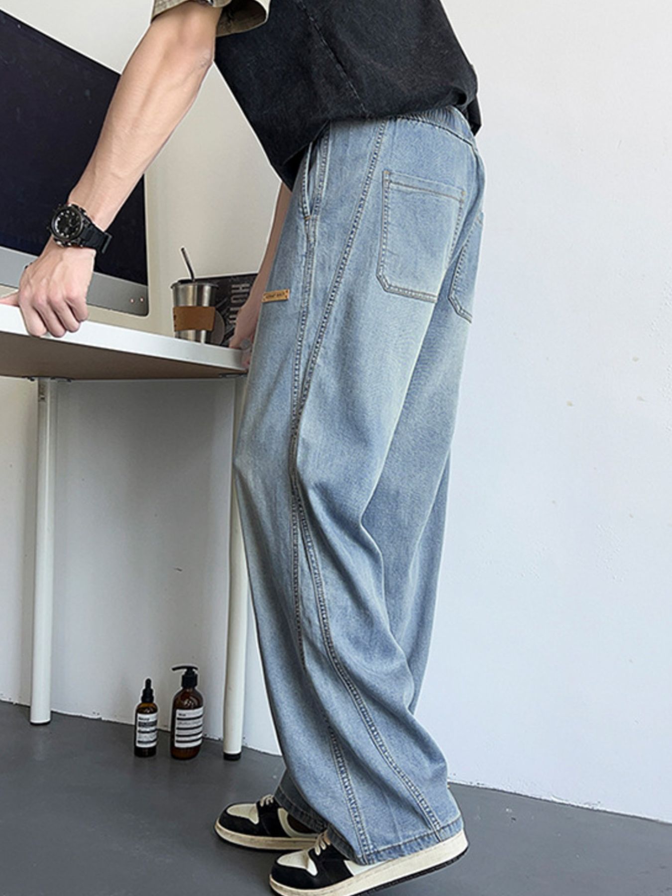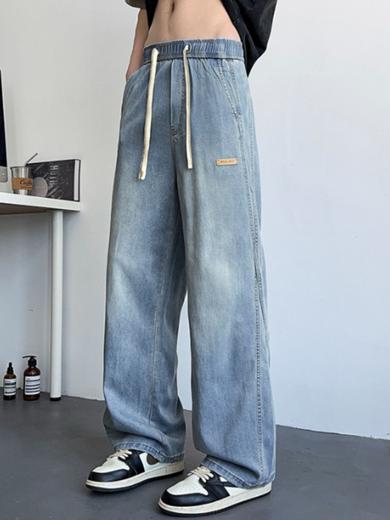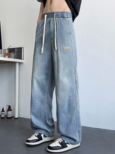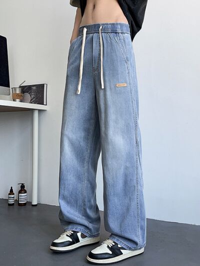 Men's Plus Size Wide Leg Drawstring Jeans