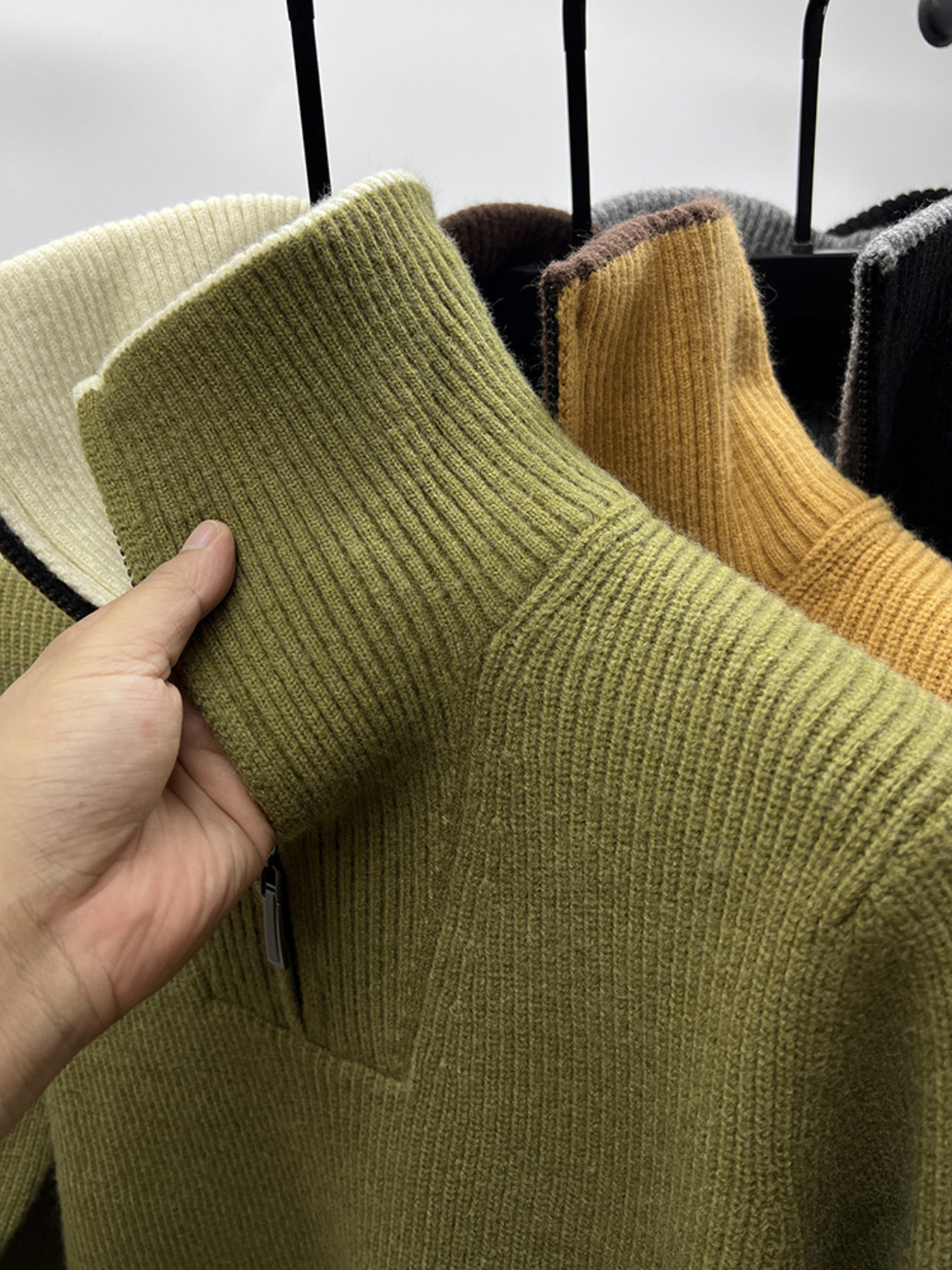 Men's Plus Size Zip Collar Long Sleeve Sweater