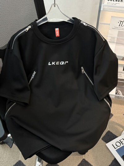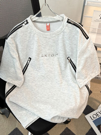 Men's Plus Size Zip Detail Short Sleeve T-Shirt