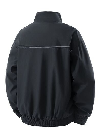 Men's Plus Size Zip Up Contrast Collar Casual Jacket
