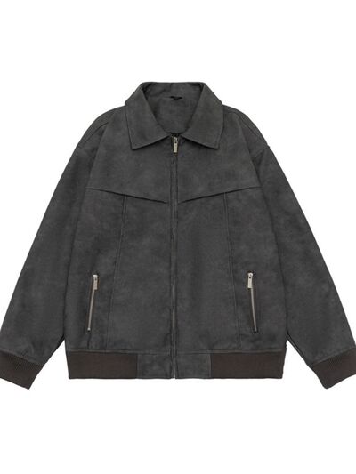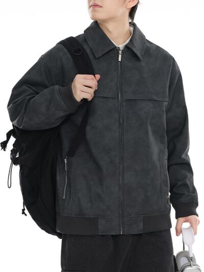 Men's Plus Size Zip Up Drop Shoulder Jacket