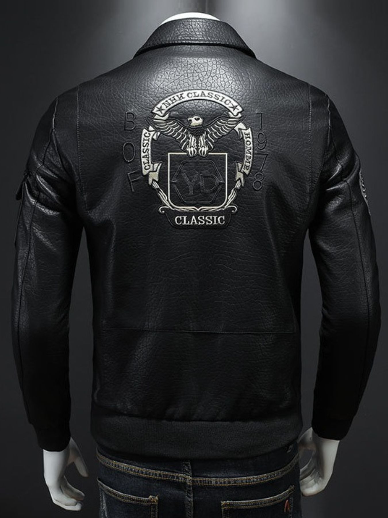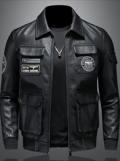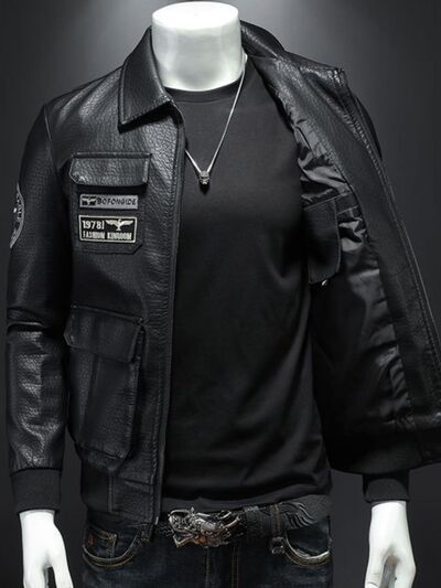 Men's Plus Size Zip Up Leather Bomber Jacket