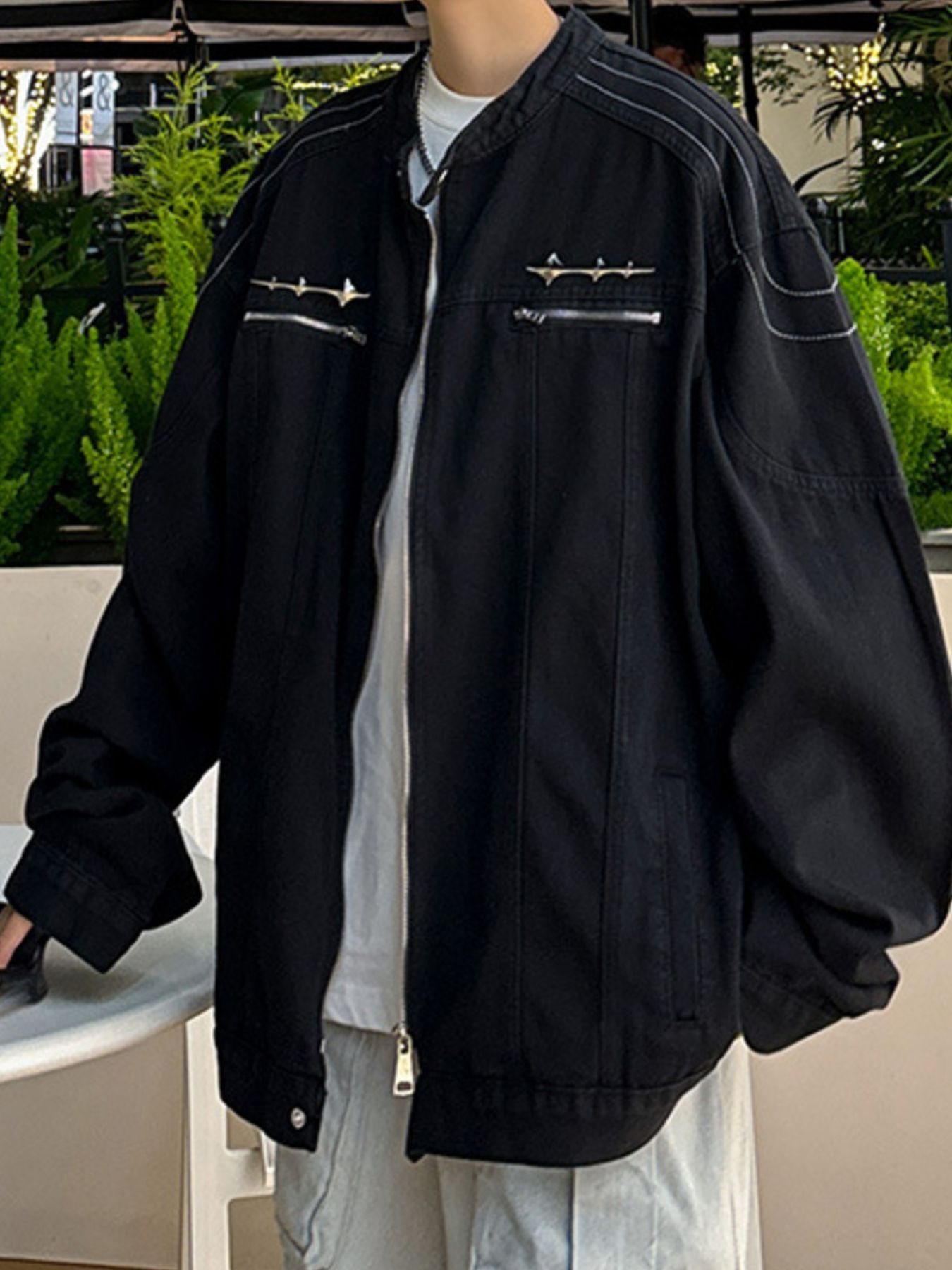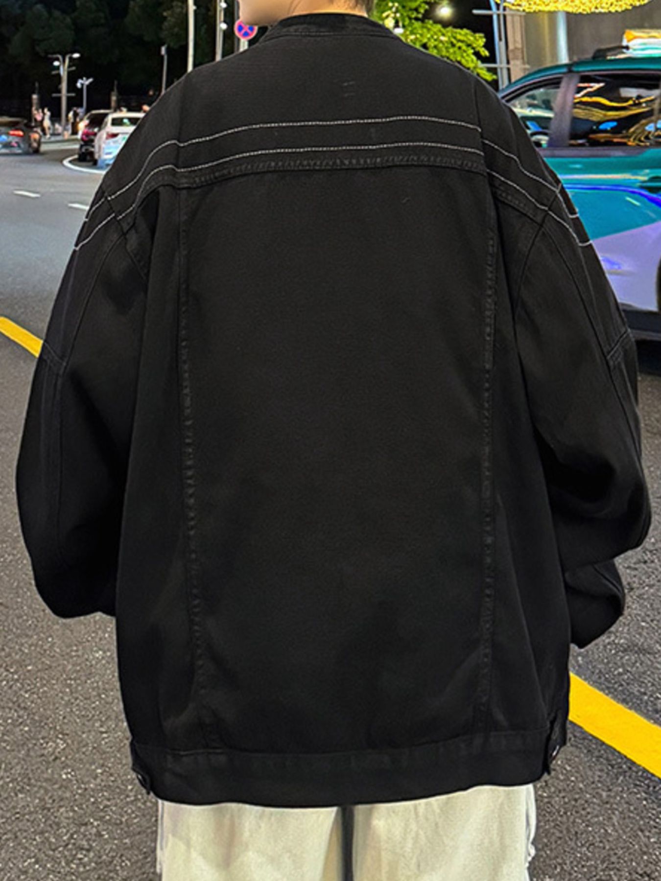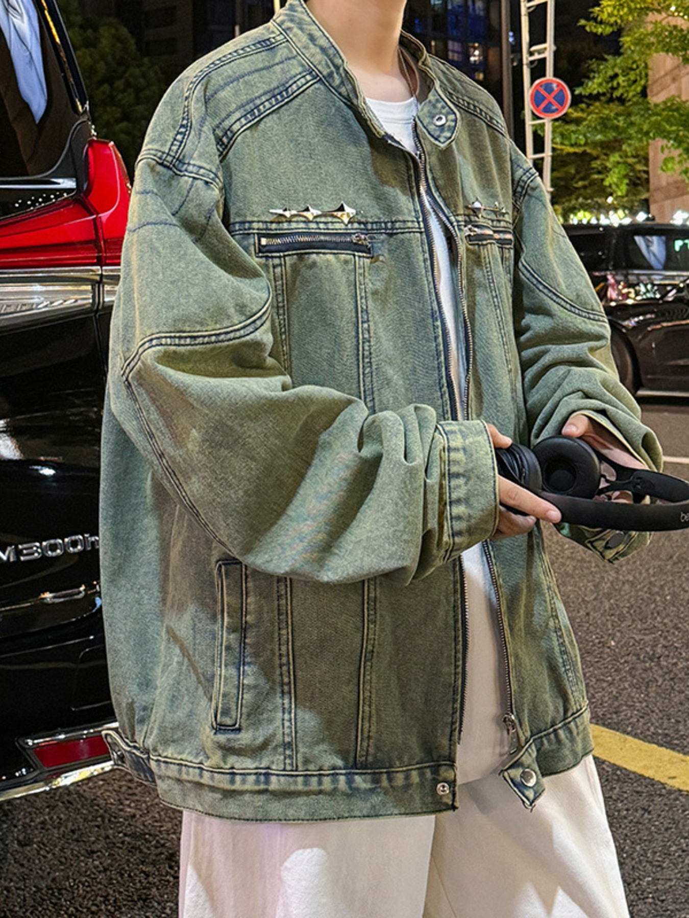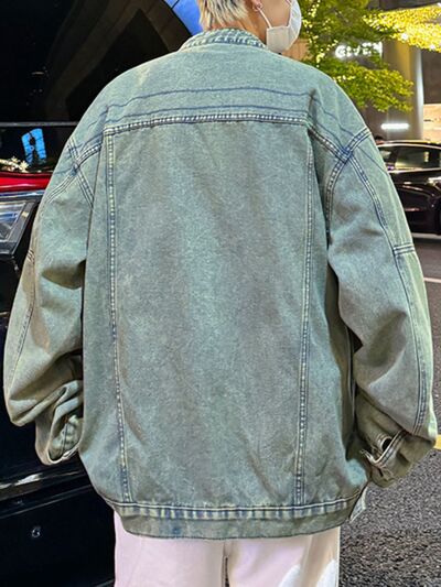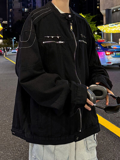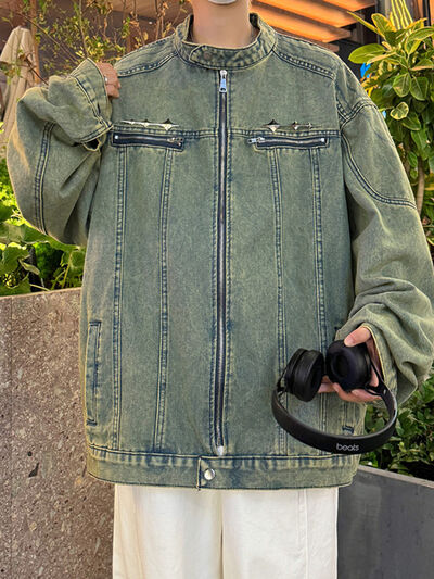 Men's Plus Size Zip Up Long Sleeve Denim Jacket