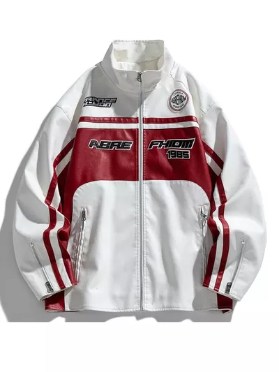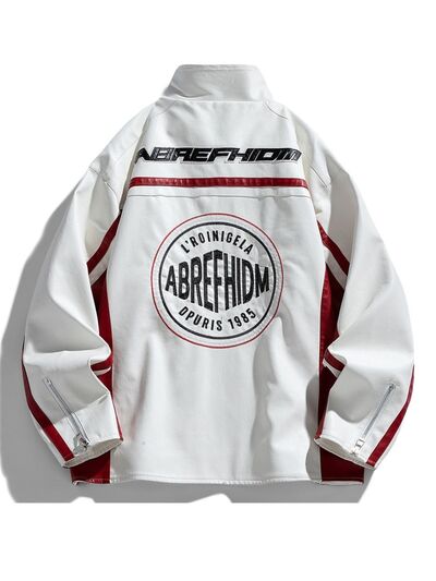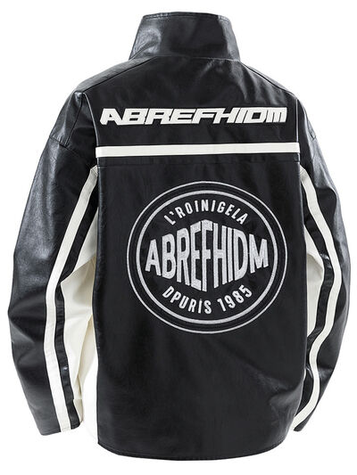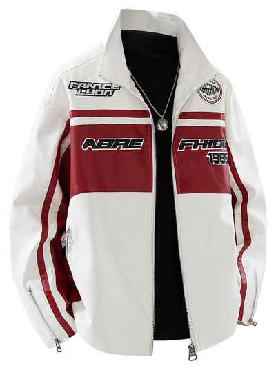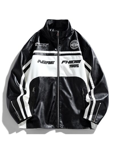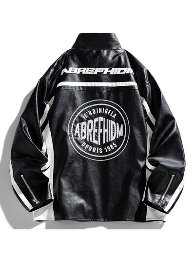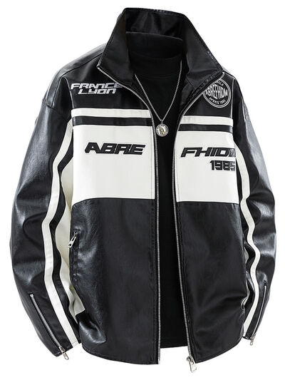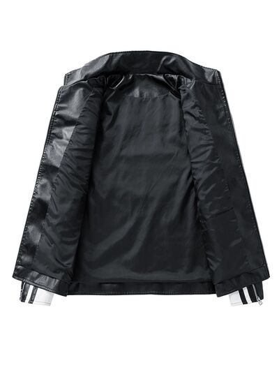 Men's Plus Size Zip Up Long Sleeve Leather Jacket