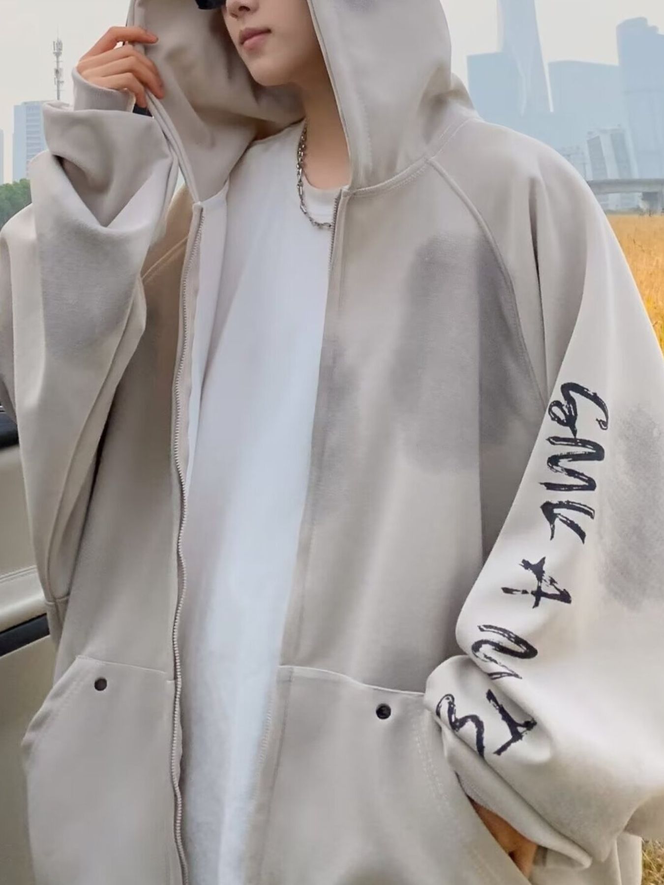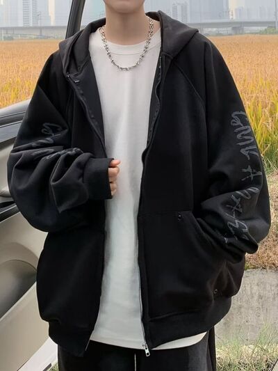 Men's Plus Size Zip Up Loose Fit Hoodie