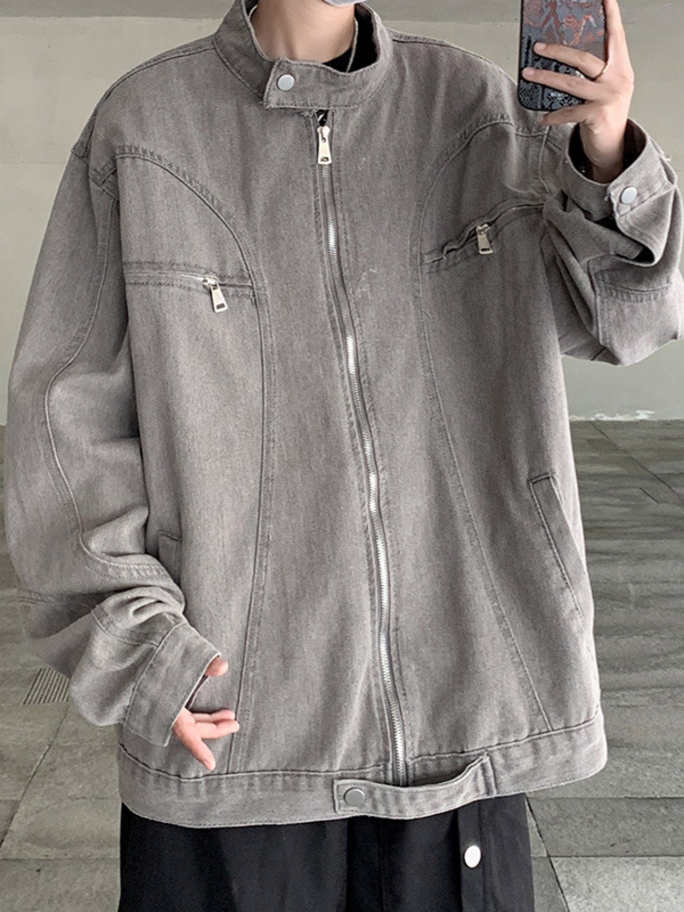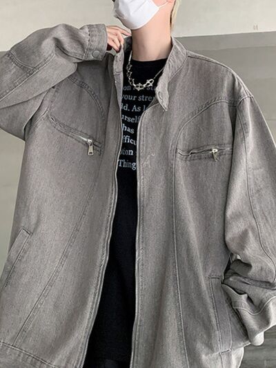 Features:Basic style,Oversized,Pocketed,Zipper