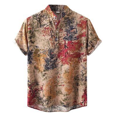 Men's Printed Button Detail Short Sleeve Blouse
