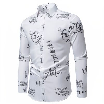 Men's Printed Long Sleeve Button-Up Shirt