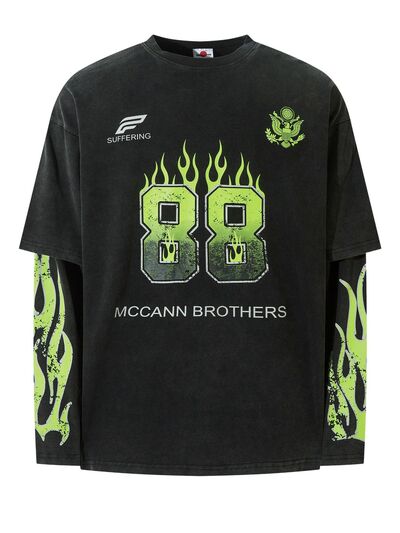 Men's Racing Flame Graphics Layered Long Sleeve T-Shirt