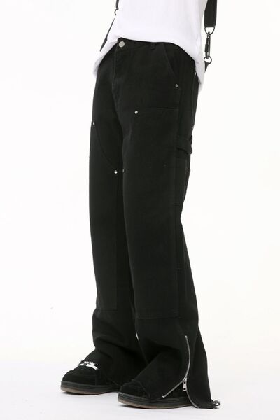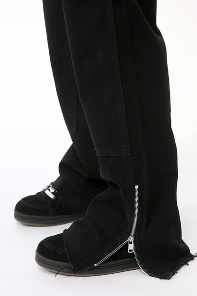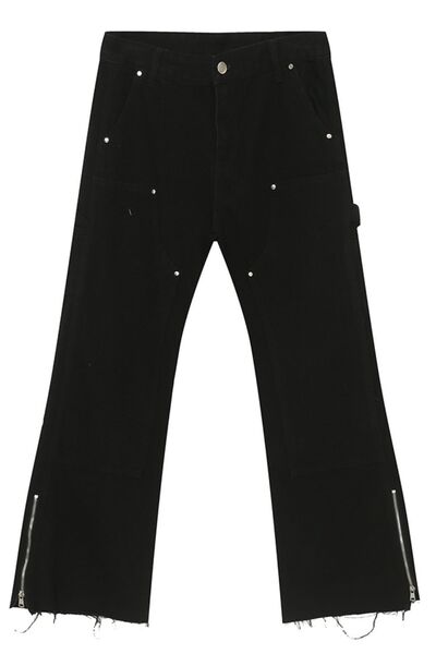 Men's Raw Hem Bootcut Jeans with Zip-Up Sides