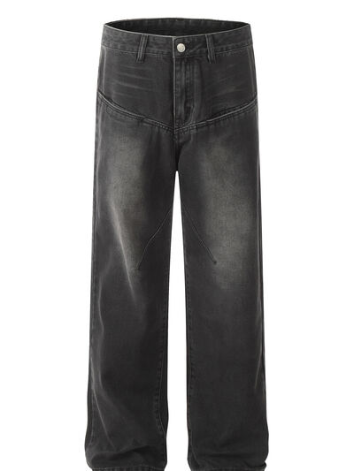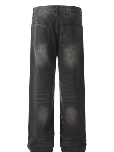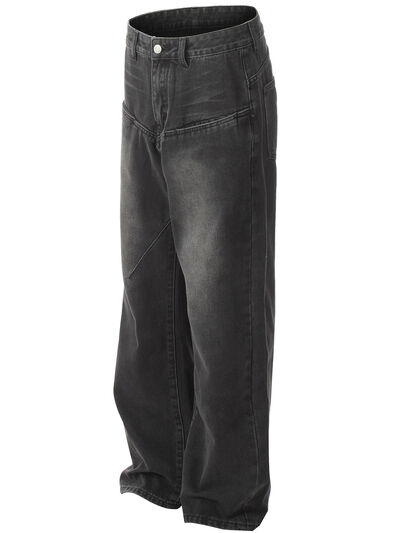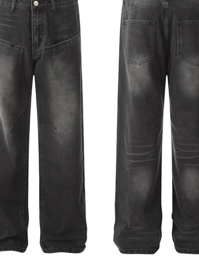 Men's Relaxed Fit Vintage Wash Wide Leg Jeans