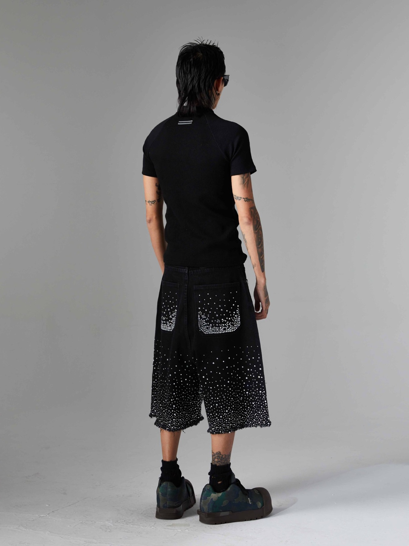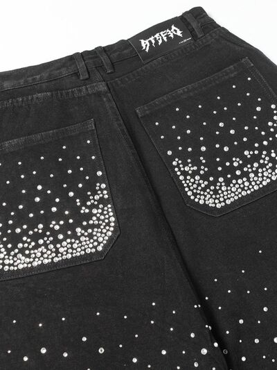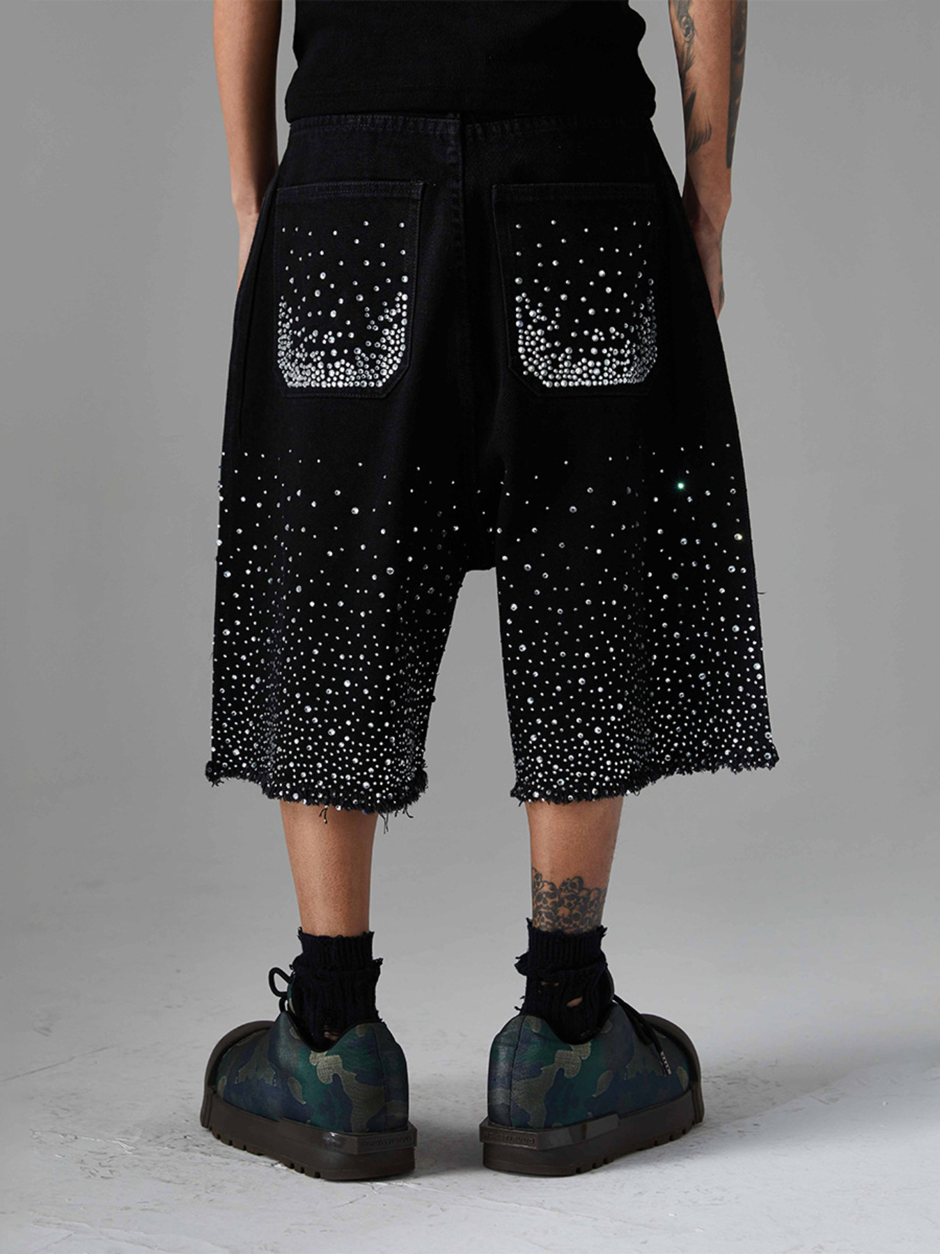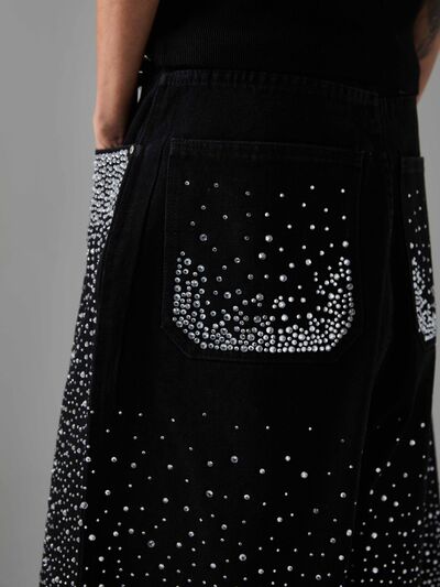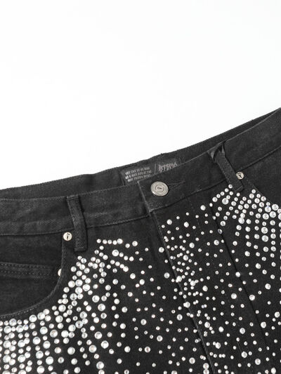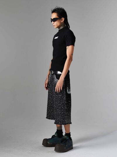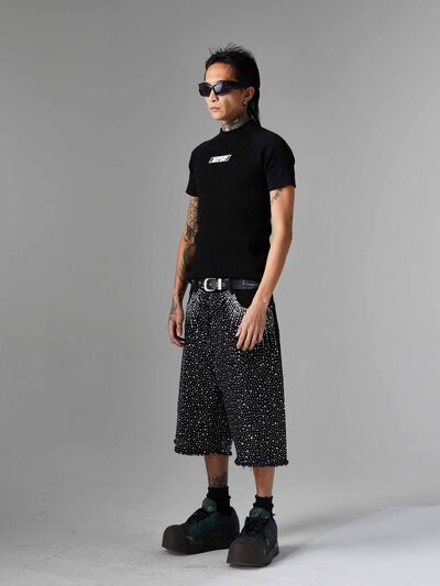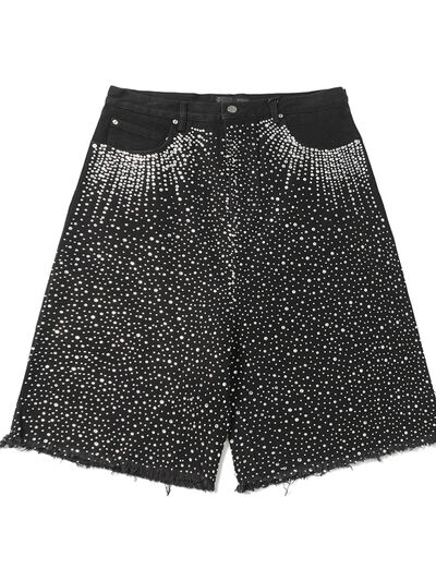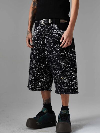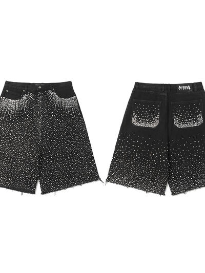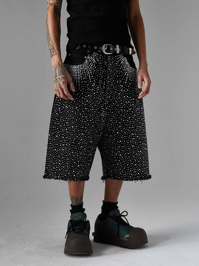Men's Rhinestone Embellished Denim Shorts