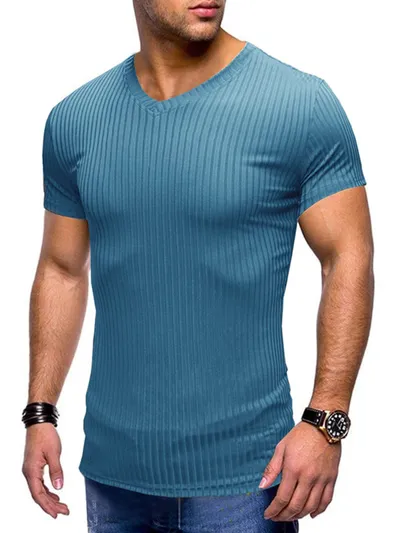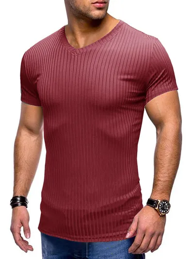 Men's Ribbed Short Sleeve Slim Fit T-Shirt