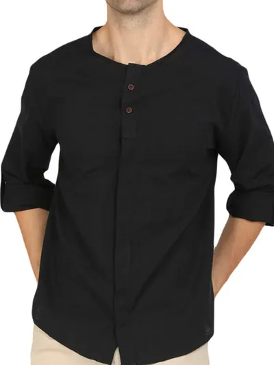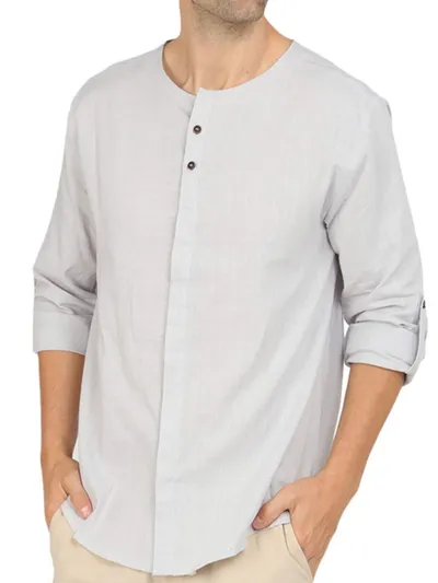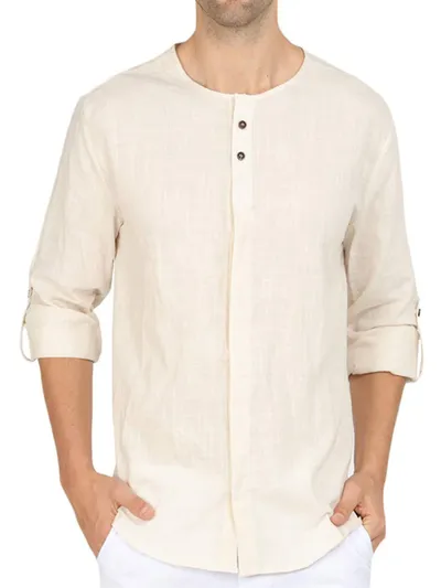 Men's Roll-Up Sleeve Linen Blend Polo Shirt