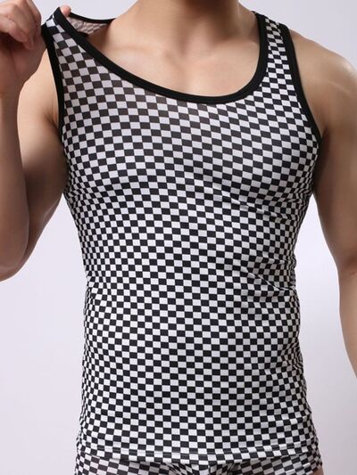Men's Round Neck Checkered Tank