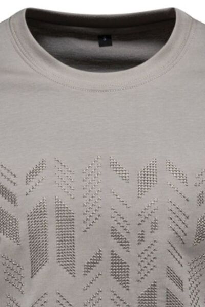 Men's Round Neck Geometric Embroidered T-Shirt