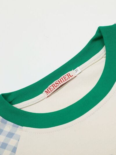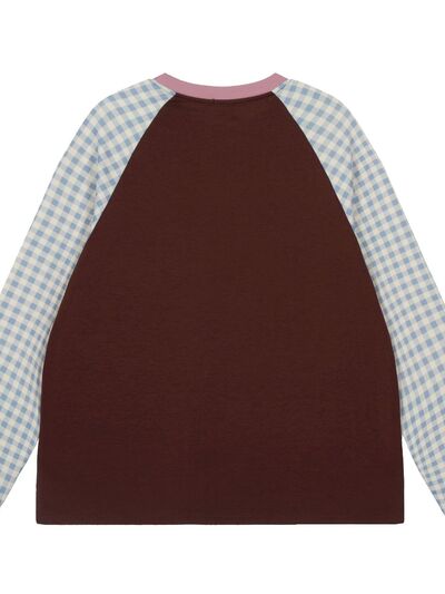 Men's Round Neck Graphic Plaid Long Sleeve T-Shirt