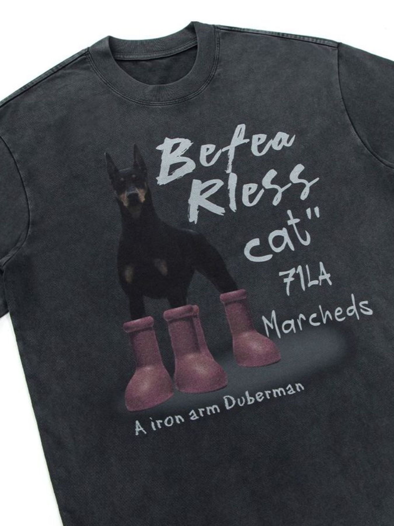 Men's Round Neck Graphic Short Sleeve Washed T-Shirt